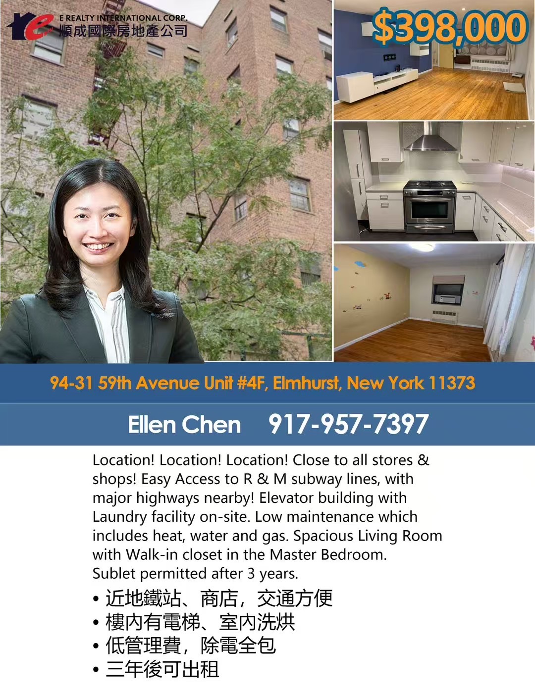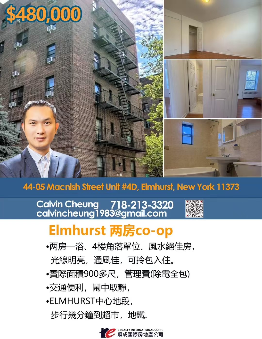 法拉盛新楼盘预售 Flushing New Construction Homes,法拉盛高品质住宅、新建独立屋、预售康斗房源合集E Realty Int’l Corp. 顺成国际房地产Elmhurst 艾姆赫斯特公寓与康斗出售艾姆赫斯特精选合作公寓、高端康斗 带电梯阳台房源独家放盘 顺成每天都有新房源上市!欢迎大家联系L/A 约看新房源!也欢迎各位客户来委托 [强]