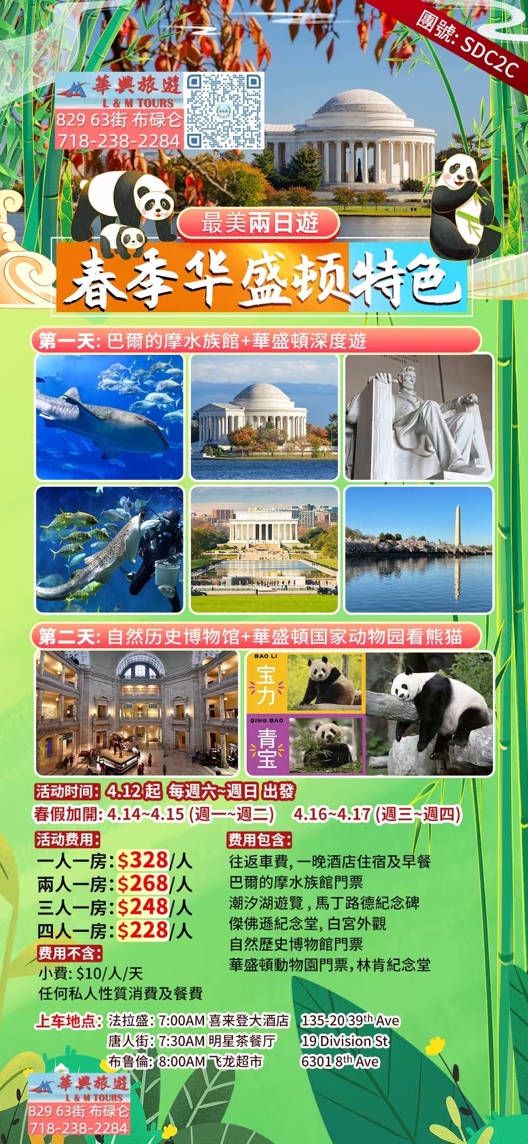 纽约旅游巴士团超值优惠 多语种服务 热门景点直达观光无忧🌈 【春季華盛頓特色最美兩日遊】團號:SDC2C🚌 出發時間:4.12起 每週六~週日發車🎉春假加開:4.14~4.15(週一~週二)