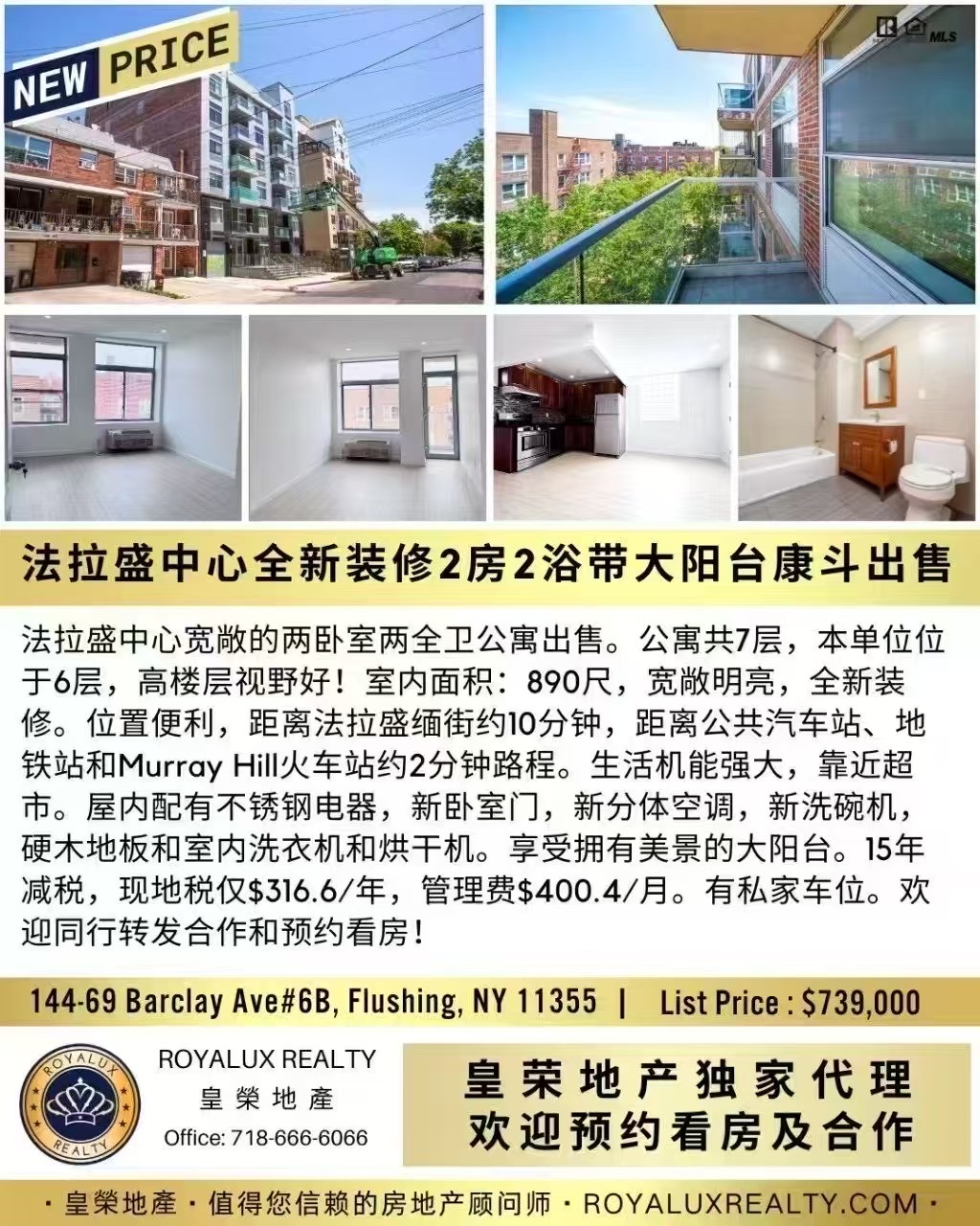 📍地址:144-69 Barclay Ave, 6B, Flushing, NY 11355