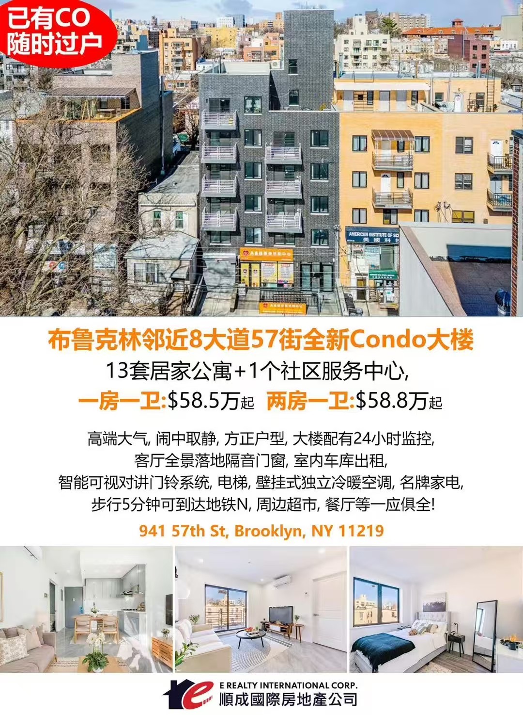 布鲁克林康斗出售 电梯新楼 精装修 配套齐全Brooklyn Condo出售 高层采光好 近地铁生活方便🧧首次公展 已售多套 欲购从速!🧧04/05 Sat 1-4pm Sun 1-4pm🧧欢迎👏经纪朋友和买家 莅临咨询参观🧧布鲁克林邻近8大道57街全新大楼已有C/O随时过户13套居家公寓+1个社区服务中心[Fireworks] Condominium一房一卫$58.5万起两房一卫$58.8万起▪️高端大气 闹中取静