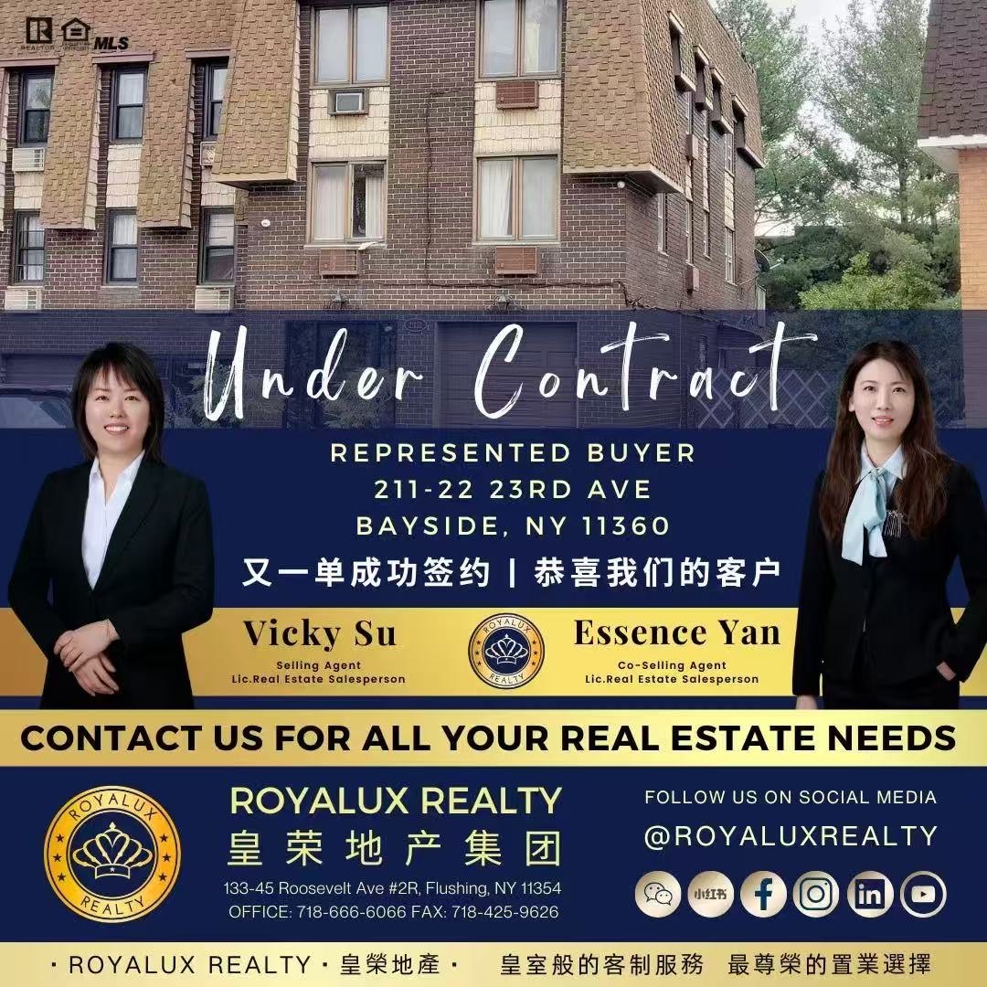 法拉盛华人地产经纪公司 全面覆盖皇后区 布鲁克林 长岛豪宅与学区房🎊又一单买卖合同成功签约!恭喜我们的客户!🤝🏻谢谢客户选择皇荣地产 Vicky Su & Essence Yan 作为您的房地产交易合作伙伴。我们拥有丰富的经验和专业团队,致力于为客户提供高品质的买卖房地产服务。无论您是寻找理想的住宅、投资物业或者出售您的房产,我们都能为您量身定制最佳方案。