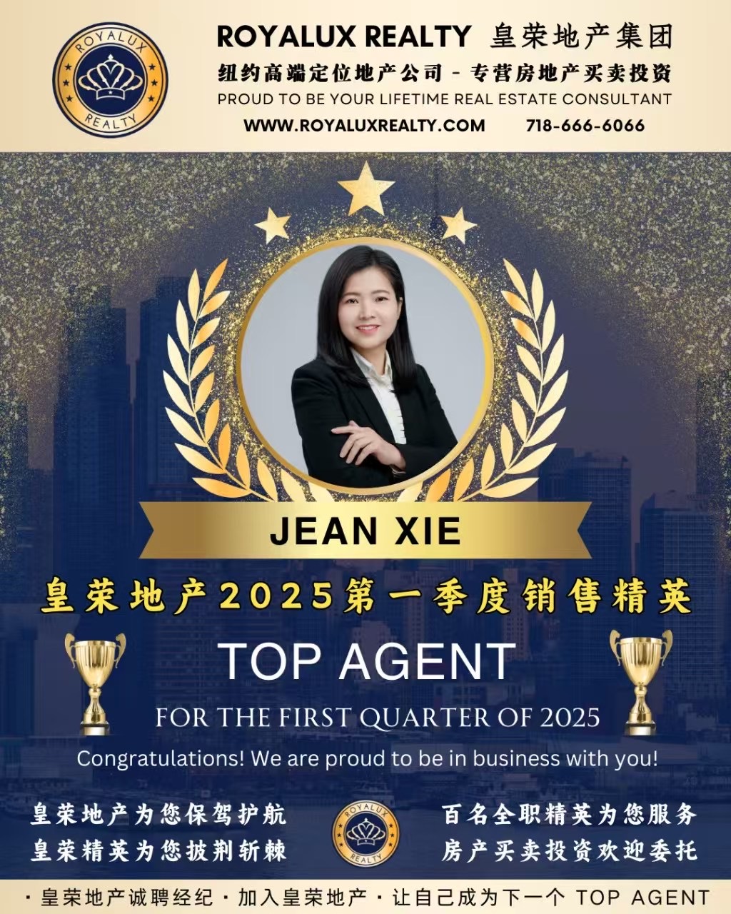 纽约最强房地产公司推荐 千万级销售记录 金牌地产经纪人带看好房🏆 很荣幸再次上榜【皇荣地产2025年第一季度销售精英荣誉榜】!衷心感谢各位客户的信任与支持!2025年仅用三个月时间,我们皇荣地产团队已创下1.63亿美元成交额,超越去年半年业绩!仅今年第一季度已成功助力158组家庭实现纽约安家置业的梦想。🏆在皇荣地产,我们以专业团队协作和诚信服务为您提供全方位房产解决方案: