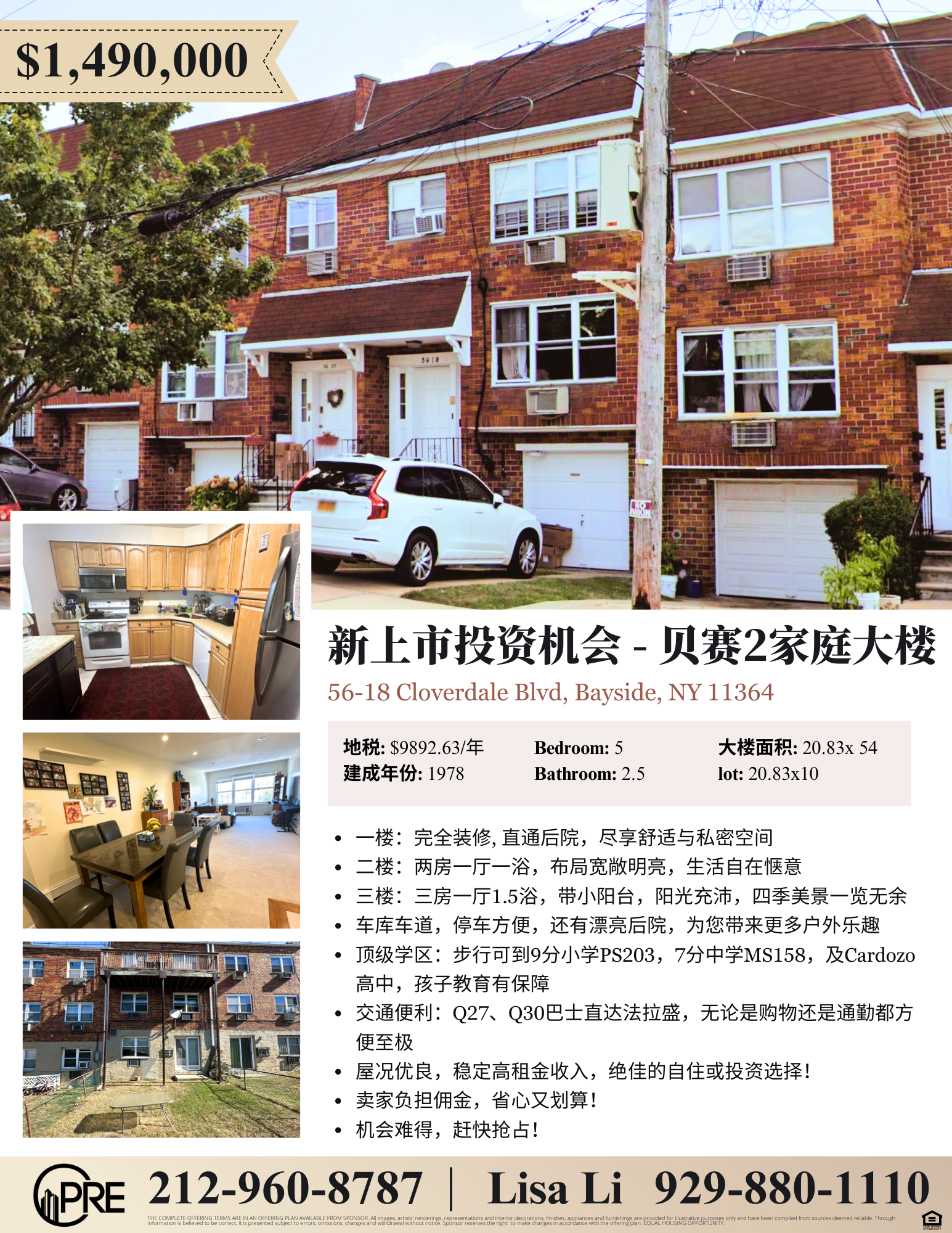 🏡地址:56-XX Cloverdale Blvd bayside NY11364