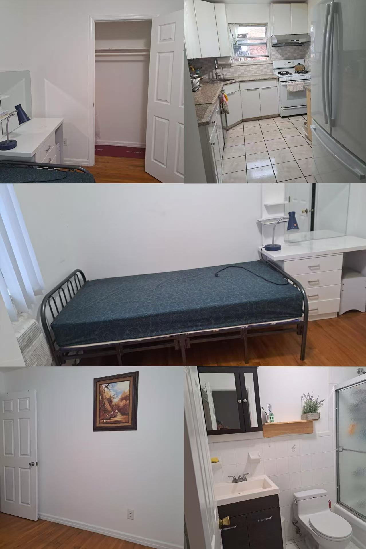 法拉盛植物园附近57ave单房出租,房间内有床,桌子,壁橱,冷气机,居家干净,随时入住,适合女士或学生。