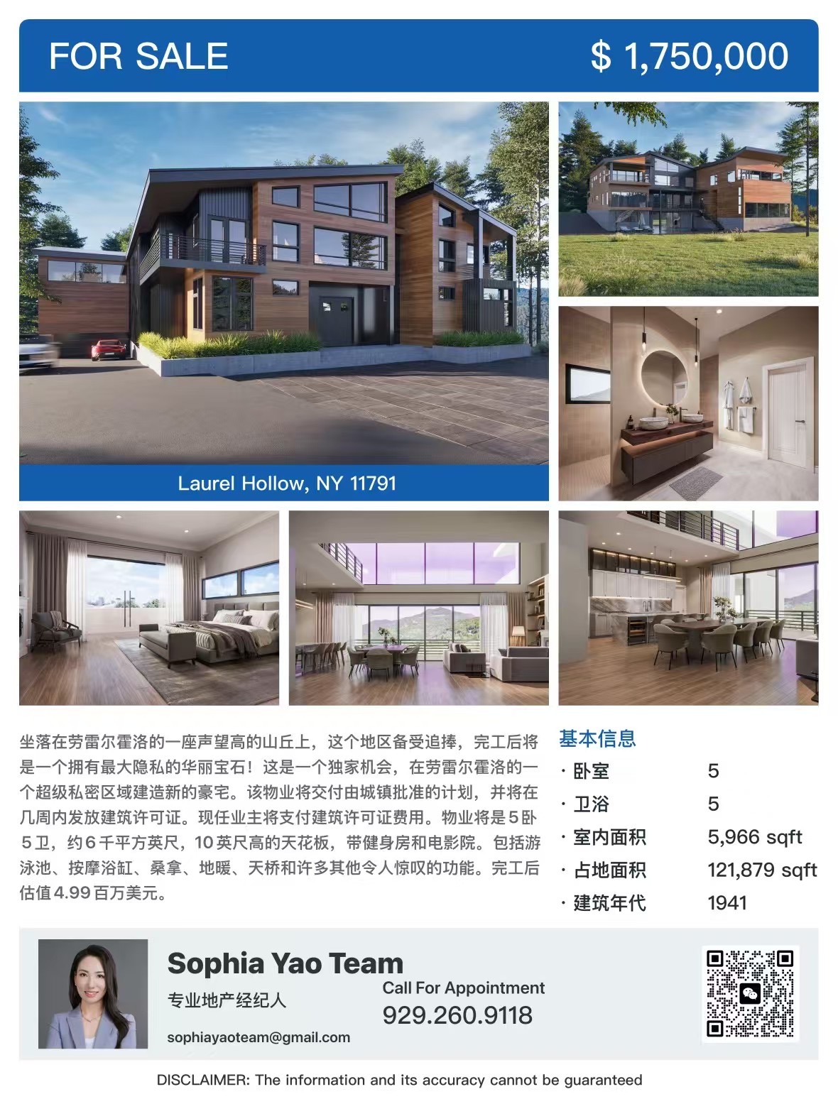 ┌┄❤️地皮推荐,长岛NY 11791 满分高中 ,可建梦想花园,屋主出建筑许可证蓝图❤️┄┐