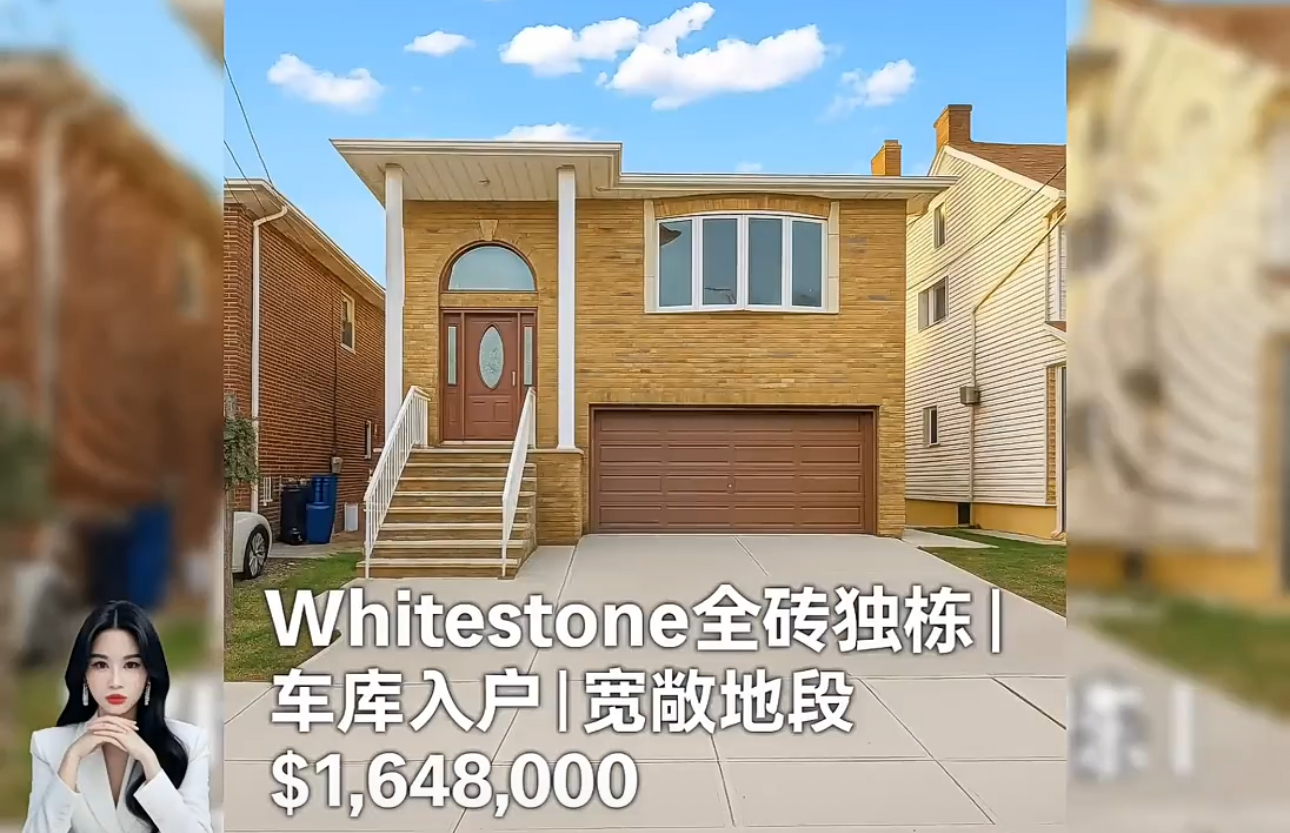 Whitestone白石镇出售全砖独栋 | 超大车库入户 | 宽敞地段 |🎈位于皇后区白石镇宁静住宅区,4房3浴,一栋维护良好的全砖结构独立屋,建筑面积宽敞,布局合理,适合自住或投资。