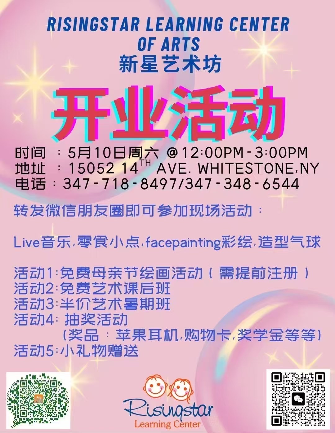 帮朋友转发:Whitestone新星艺术坊下周六免费🆓母亲节活动!