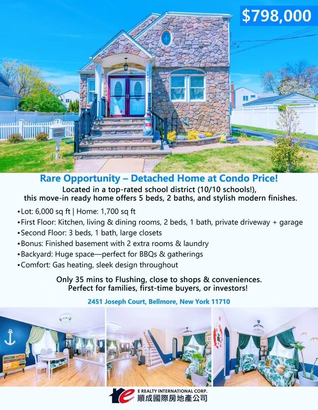 6️⃣交通便利!离法拉盛35 分钟路程!靠近商业街,重要❗️生活方便!拎包入住!投资自住首选!特别适合第一次买房子🏠地址 Joseph CT, Bellmore, NY 11710