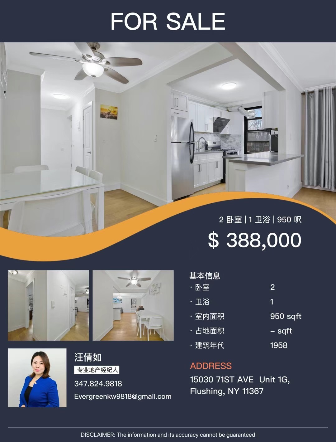 皇后区法拉盛华人公寓出售 生活便利 租金潜力高法拉盛高层公寓出售 视野开阔 配套设施齐全 南法拉盛大两房一厅 有钥匙🔑随时约👀