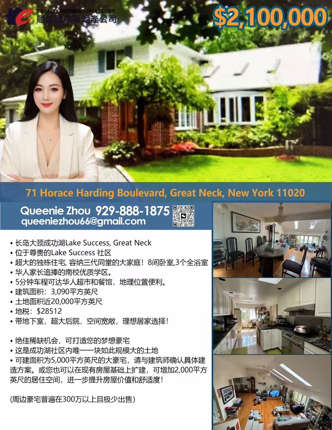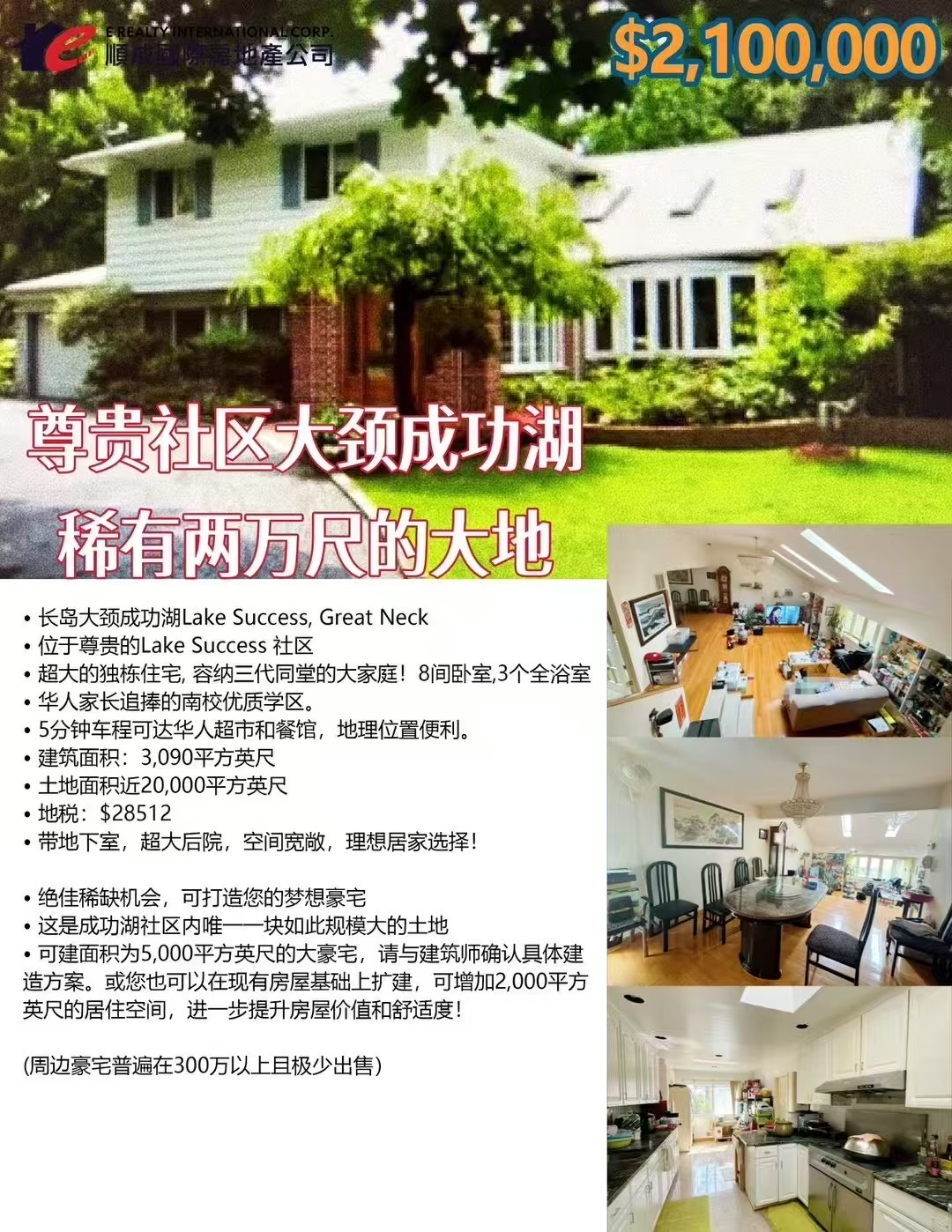 长岛大颈高性价比房子出售 适合首购族 移民置业优选长岛稀有上市房子出售 附带车库与花园 户型实用宽敞这个周天3pm 欢迎电话预约☎️位于尊贵的大颈成功湖Lake Success 社区 ✅近两万尺的超大地块|独栋住宅🉑容纳三代同堂的大家庭!