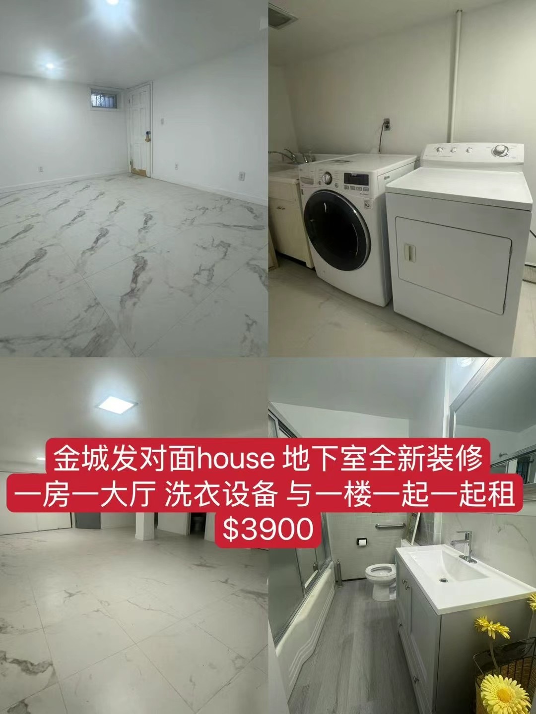 ❤️好出租 👏🈴作金城发对面 别墅 一楼+ 地下室( 全新装修)+ 🈶洗烘设备共四房二浴室 漂亮后花园带停车位+ 车库