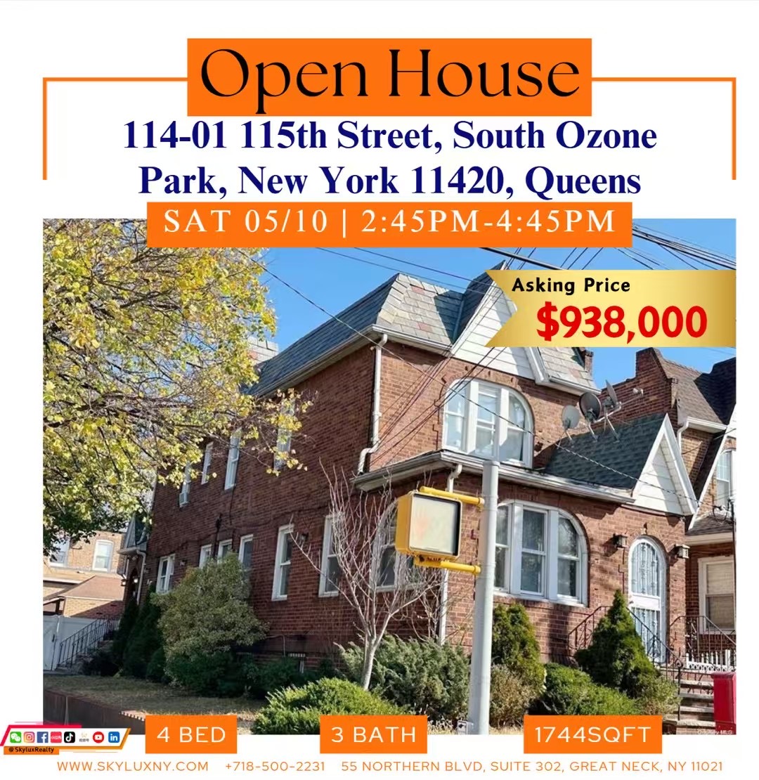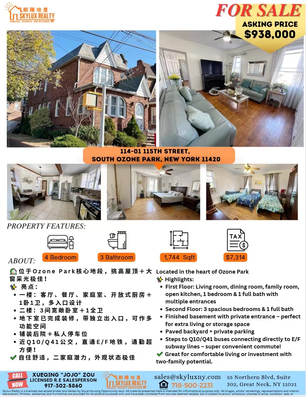 皇后区房子出售奥松公园Ozone Park Queens NY独家房子出售 移民首选低价住宅房产买卖信息合集[太阳][太阳]🏅🏅周末公展!🆕新上市🏡 $93.8萬✨🏠一家庭 Ozone Park- 黄金地段。4间卧室; 间浴室和3 厨房地27.25x97.17, 2648 平方尺地税底7314。