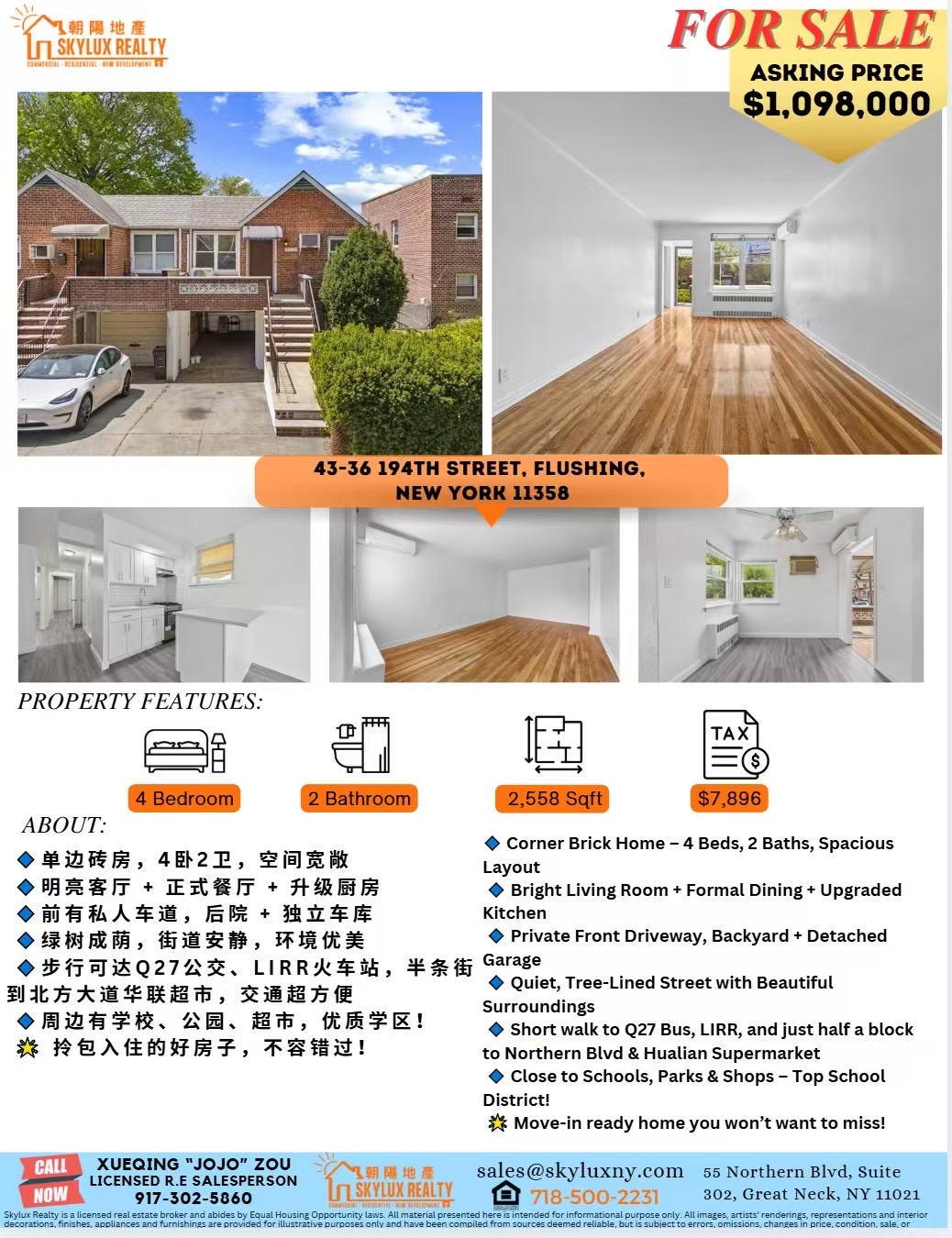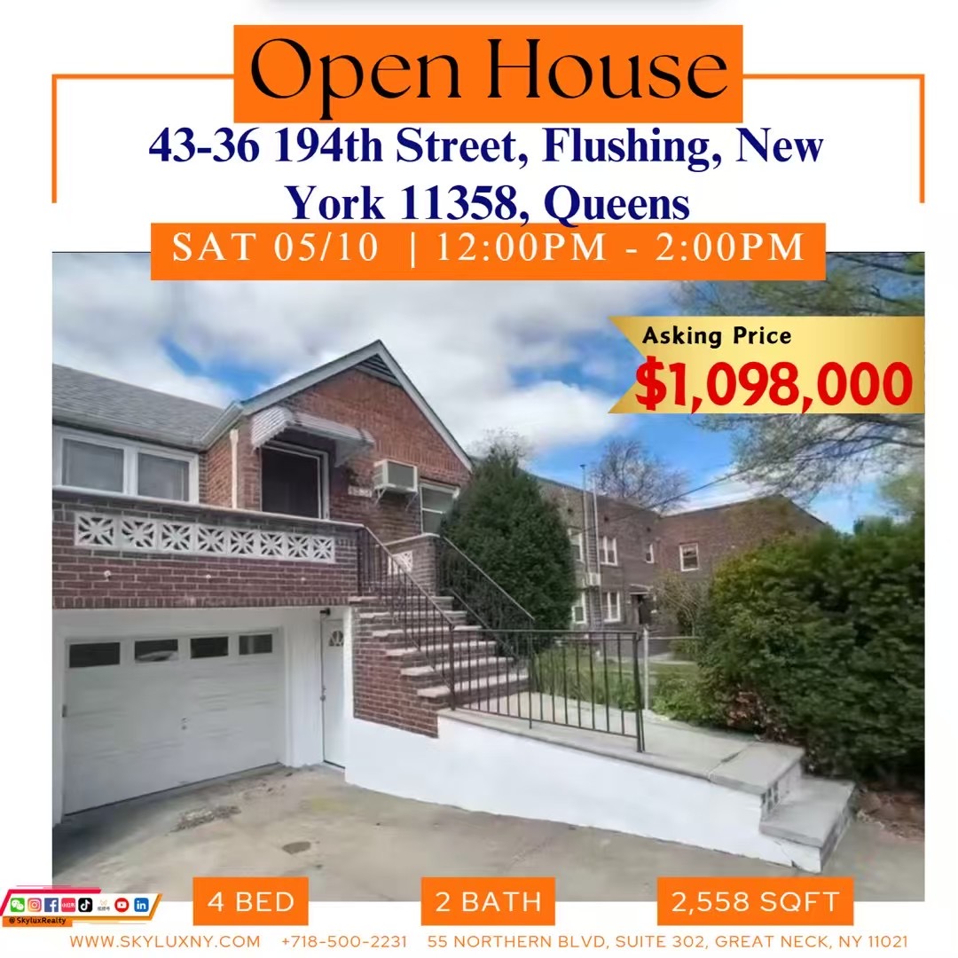 ☀☀🥇🥇周末公展[Party][Party]🆕 法拉盛 精致2家庭住宅 售价$1,098,000精美装修,适合自住或投资每套各设有两房一卫,位于安静宜居社区
