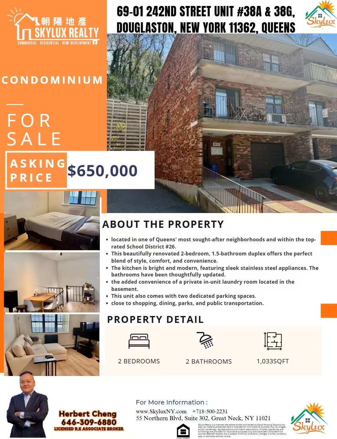 道格拉斯顿公寓出售 靠近LIRR交通便利 华人购房优选长岛道格拉斯顿公寓出售 学区优质 适合家庭投资🏡 皇后区热门社区|翻新复式2房1.5卫公寓📍位于皇后区人气社区,隶属顶级第26学区,教育资源优质!✨ 房源亮点:精美翻新,时尚舒适 明亮现代厨房+不锈钢电器 升级浴室,质感满满 私人洗衣房就在自家地下室,方便又实用 附送两个专属停车位,解决停车烦恼 🛍 周边购物中心、餐厅、公园、公交一应俱全,生活便利!📞欢迎预约看房,先到先得~