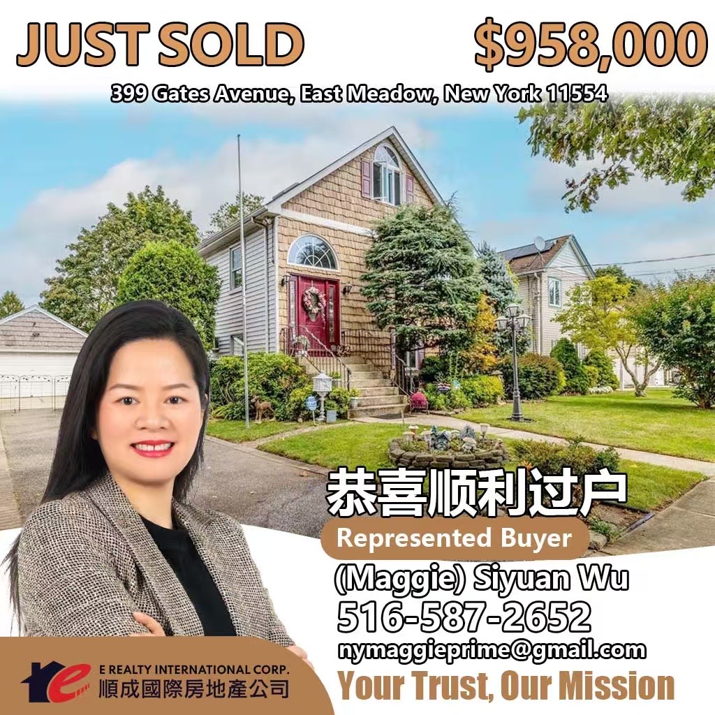 E Realty Int’l Corp. 顺成国际房地产 找纽约买房卖房靠谱经纪人 法拉盛华人房地产顾问一对一服务全流程 New York 华人 Real Estate Agent 专业团队助力买房卖房投资出租全覆盖