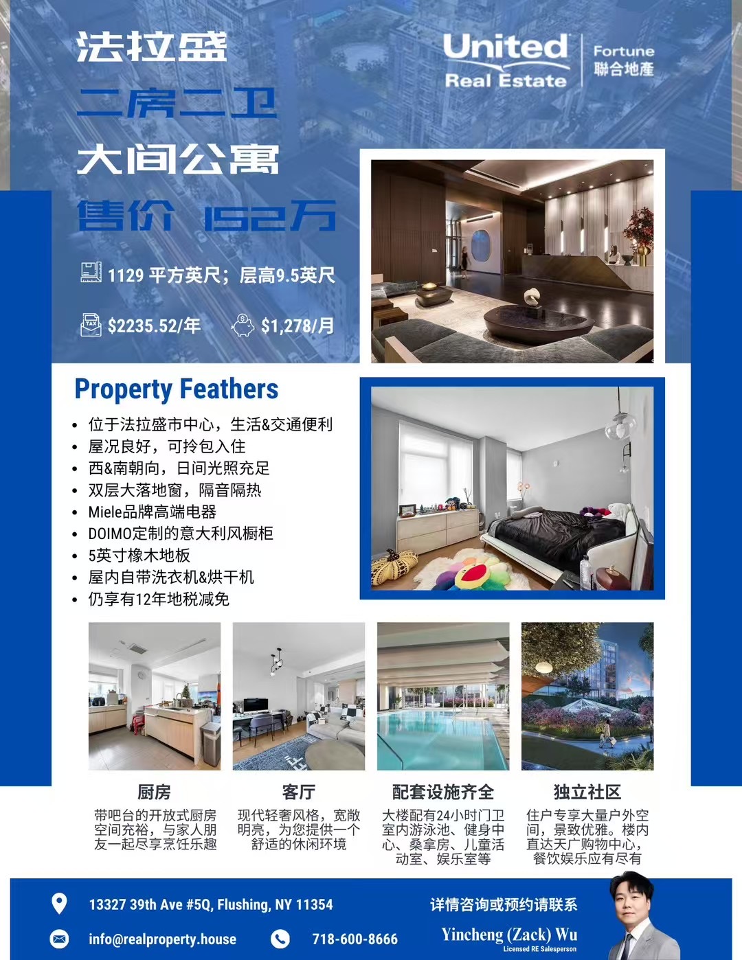 Flushing法拉盛全新楼盘康斗出售信息法拉盛新建公寓康斗 新开发楼盘 可贷款 近超市交通便利 华人区热盘🔥皇后区法拉盛华人公寓出售 生活便利 租金潜力高法拉盛高层公寓出售 视野开阔 配套设施齐全联合地产独家代理住家或康斗出售🔥☎️详情咨询或预约 516-990-8888或直接联系Listing agent.