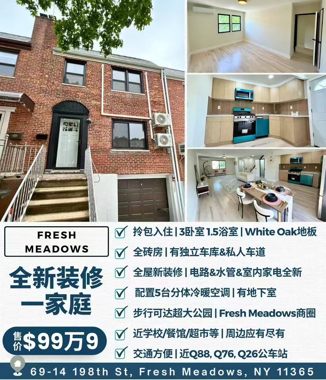 💥 Fresh Meadows 黄金地段全新装修独立屋 🏠