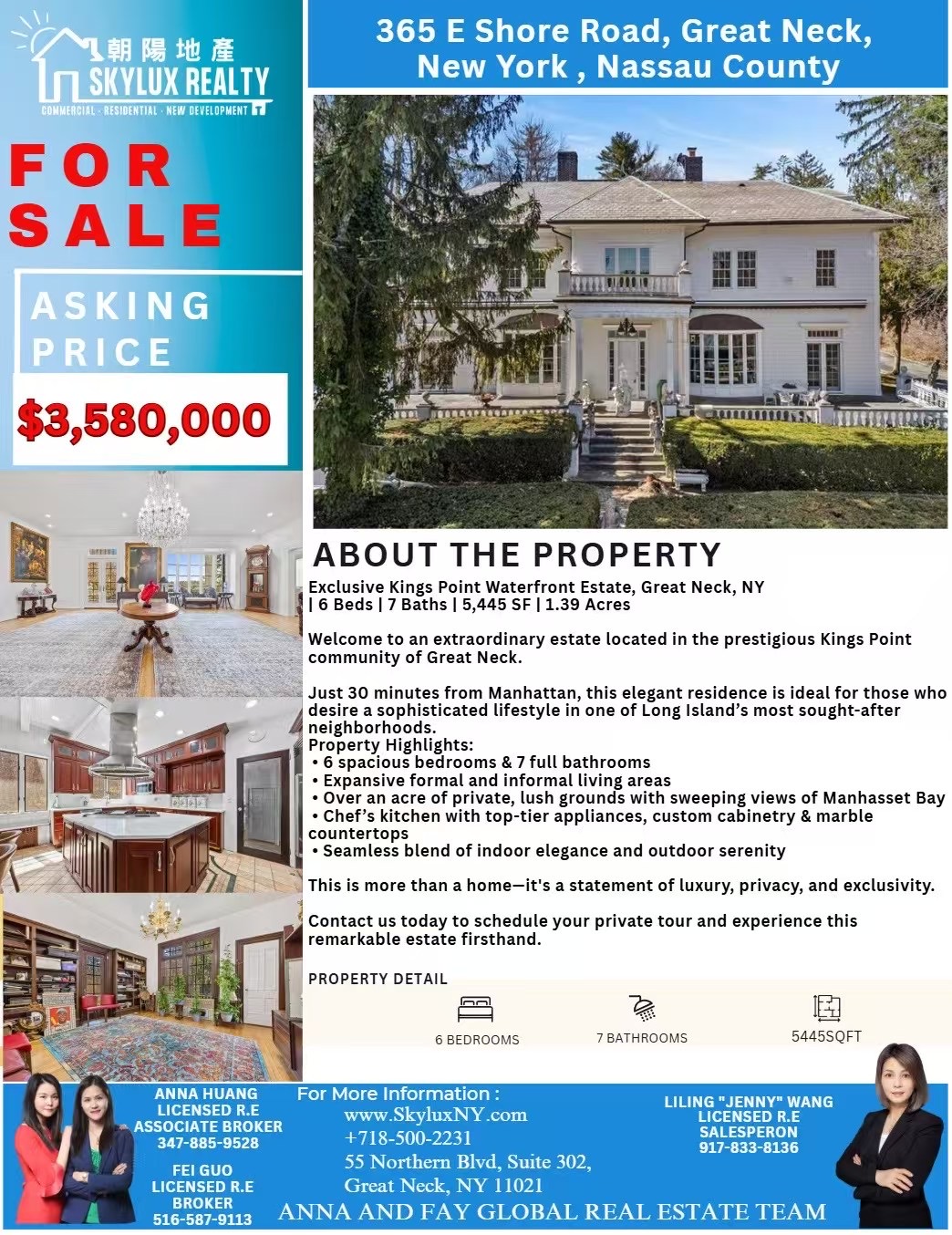 朝陽地產💯💯Skylux Realty [握手]歡迎合作[握手]Anna & Fay Team☎️Fay(516)586-9113