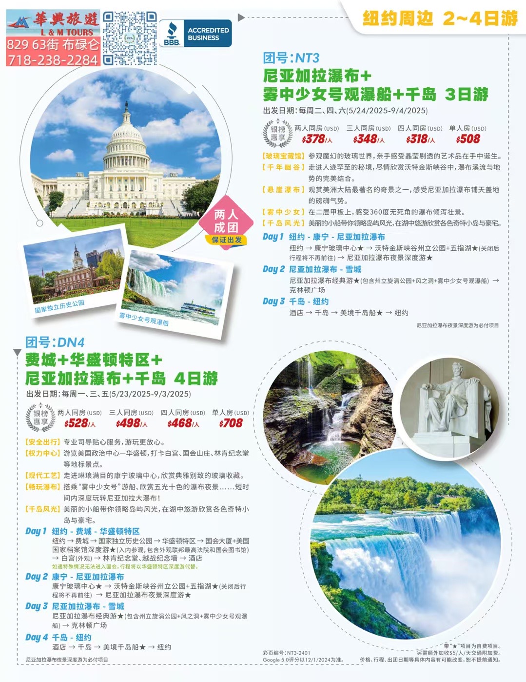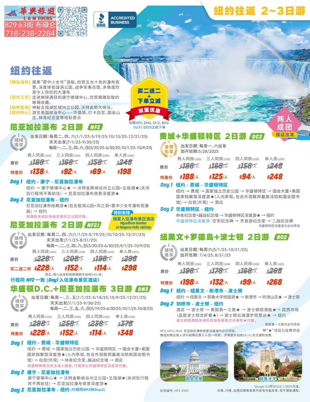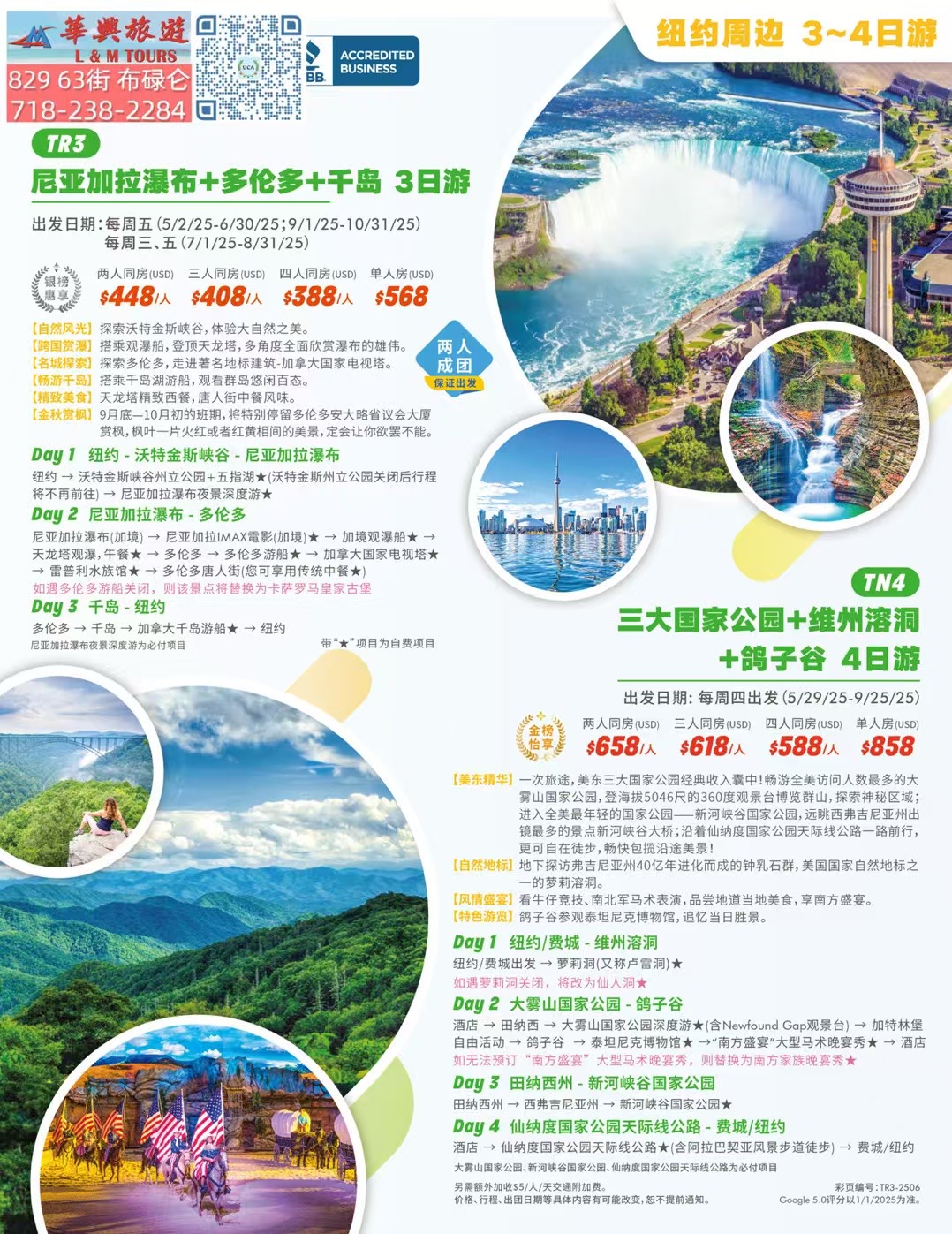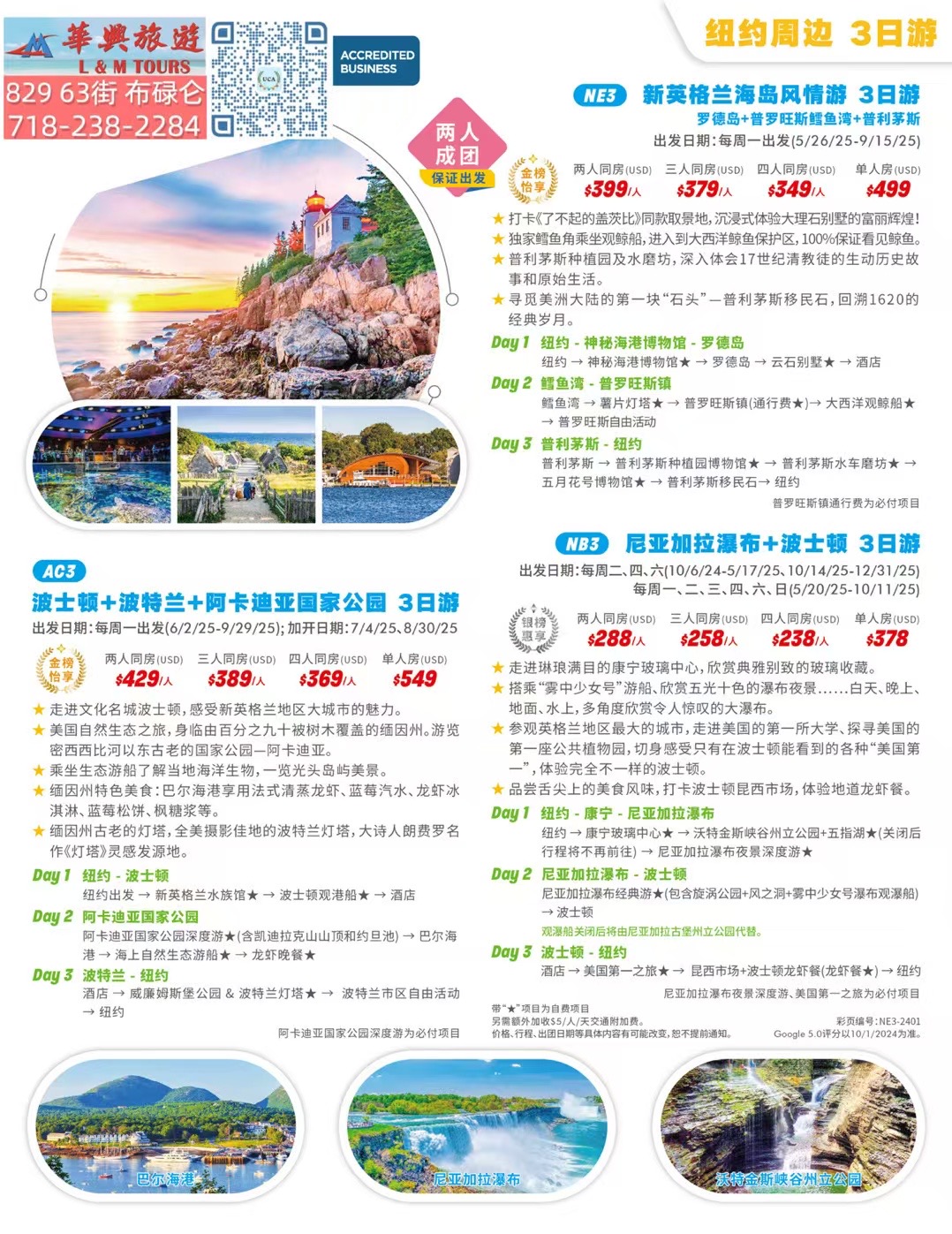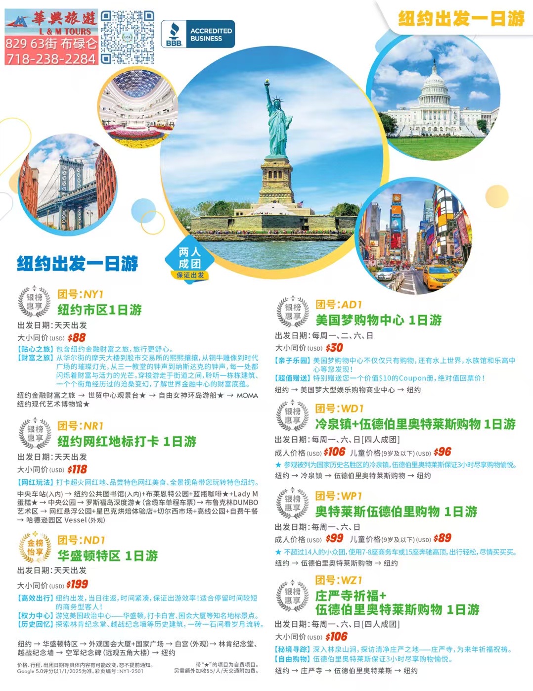 多样巴士团线路,任您选择华兴旅遊 718-666-3918 829 63 Street Brooklyn, NY 11220