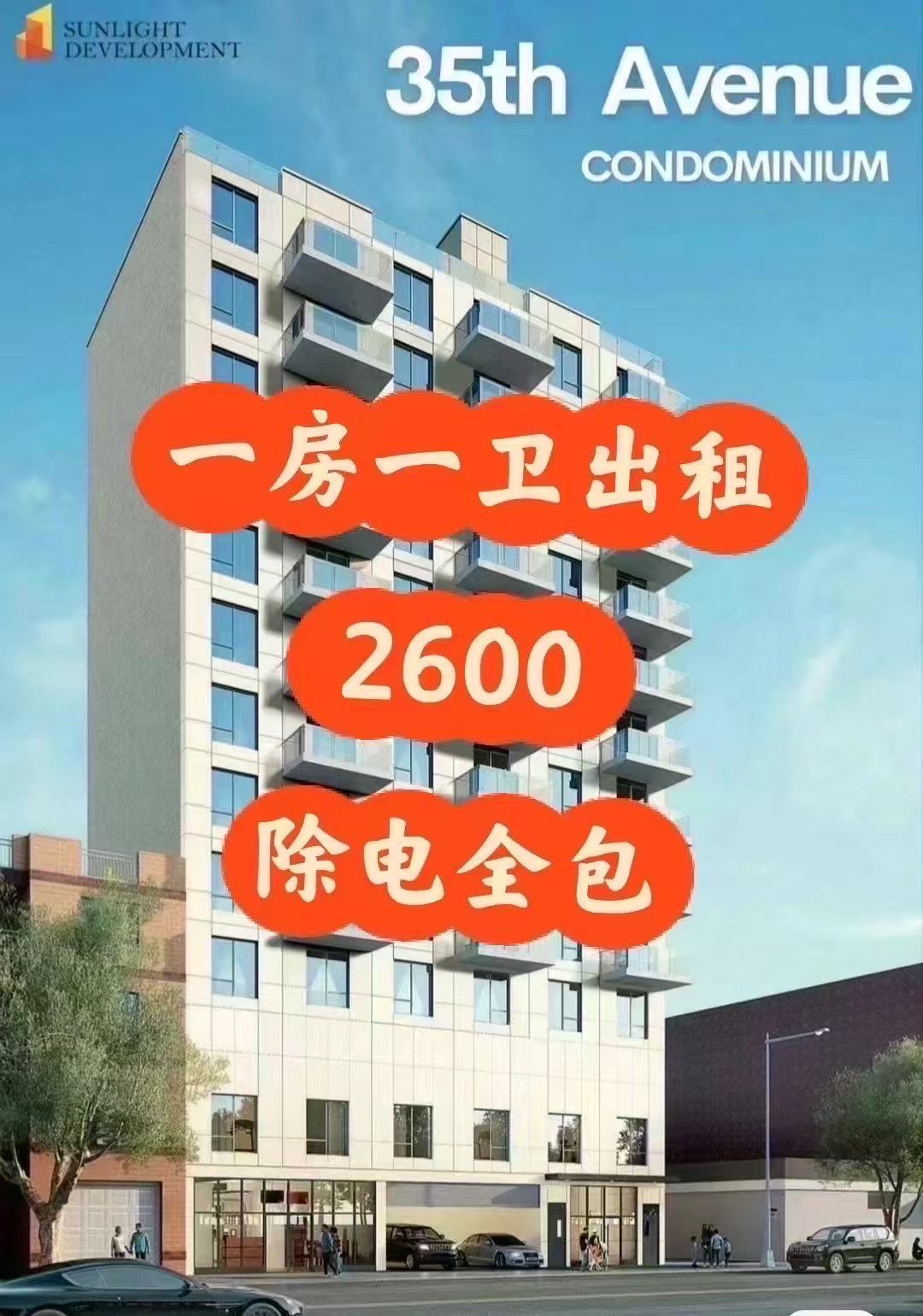 欢迎同行合作转发👏1️⃣房1️⃣浴 豪华公寓出租134-16 35th Avenue, Flushing租金$2600除电全包,室内独立洗烘,免费健身房,楼下有公共停车场,大楼不接受宠物,租客付申请费