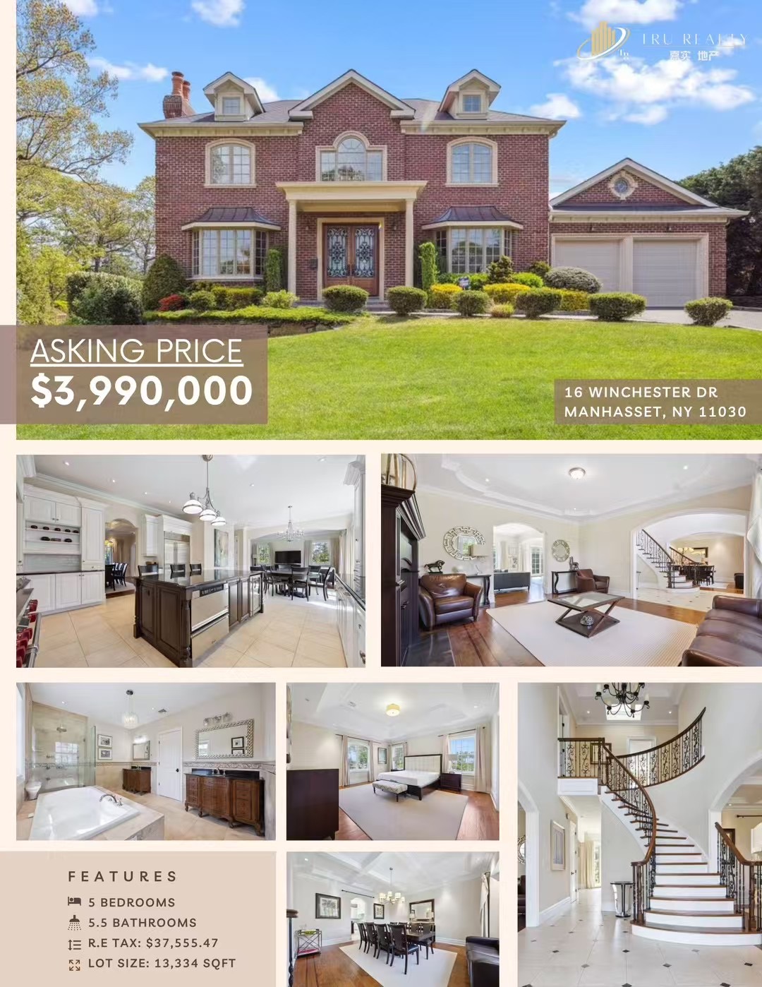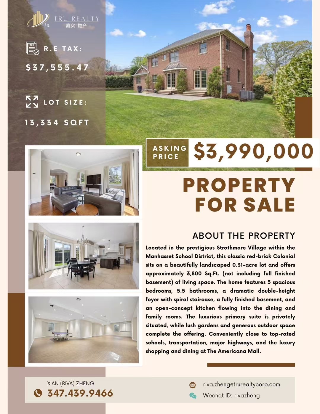 曼哈塞Manhasset Strathmore豪宅火热🔥上市;下午2:00-4:00公展!在纽约长岛最受欢迎的曼哈塞特Strathmore Village社区,这座2014年建造的砖石独栋豪宅以其欧式典雅外观与高端室内设计,为居住者呈现一场关于品位与舒适的生活盛宴。