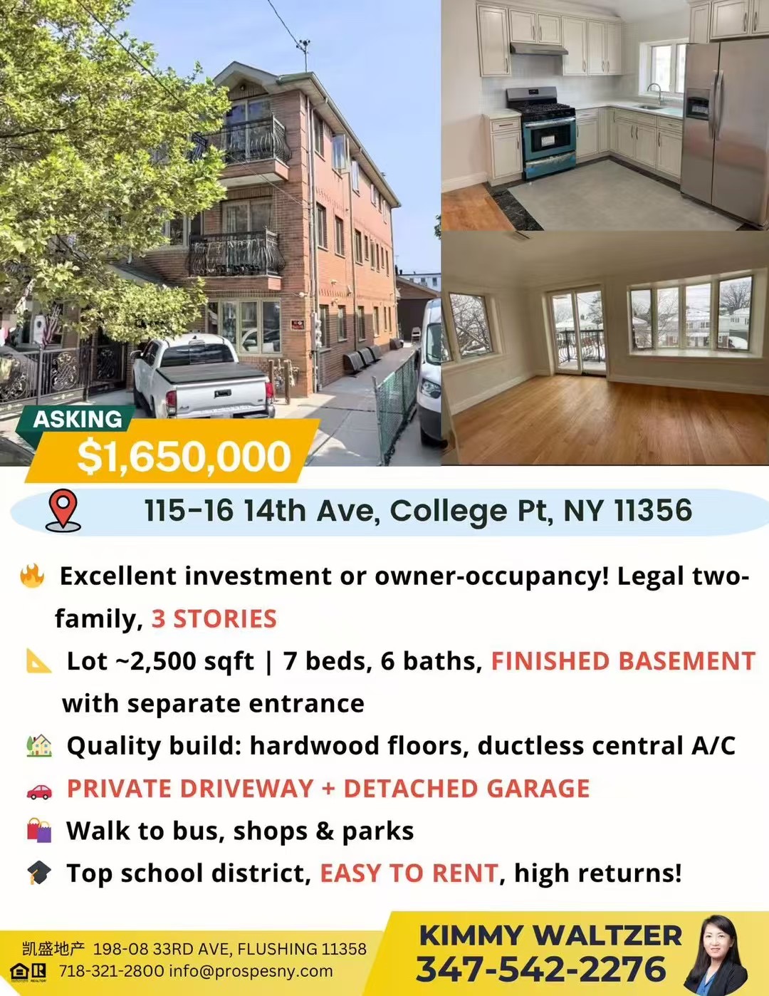 🏡 大学点新上市,凯盛地产独家代理 🏡🐾【College Point 全砖两家庭住宅】投资自住皆宜!