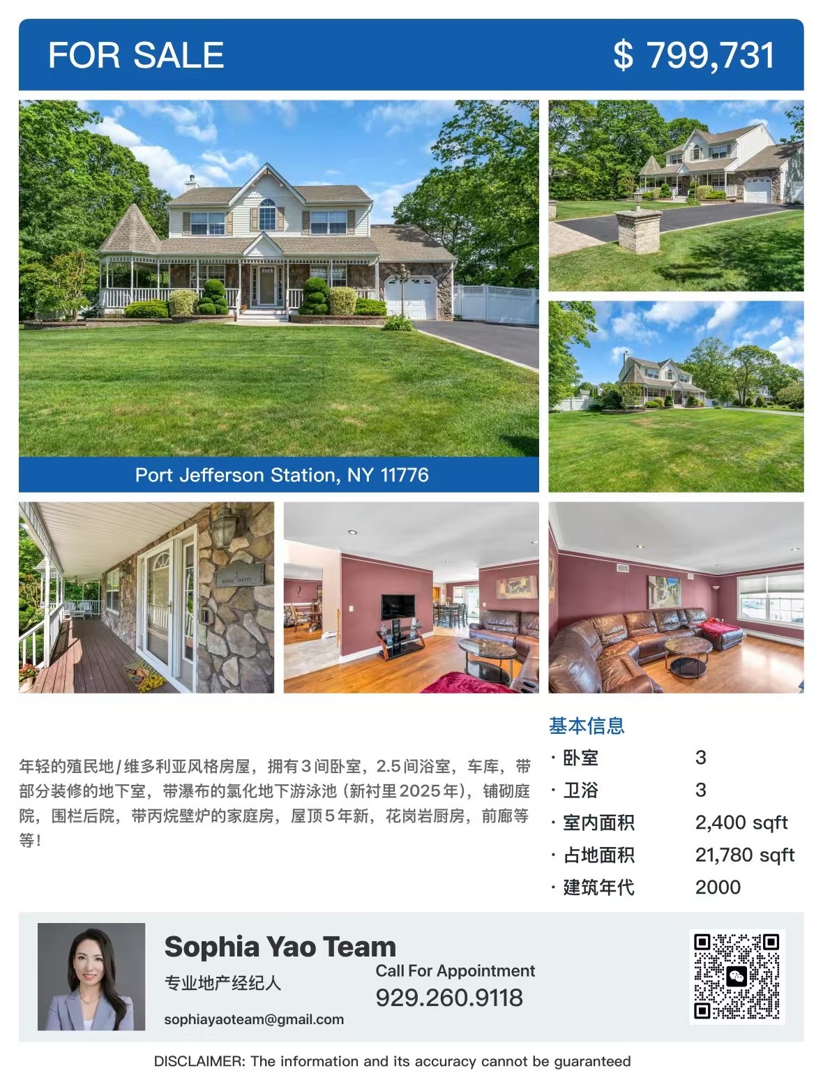 🔥长岛独立住宅房屋出售 华人家庭理想居所 靠近优质中小学长岛联排别墅房屋出售 投资潜力大 周边生活设施齐全🔥Port Jefferson Station🏠新上独栋🛁3房3浴🧩2400呎🚘1车位💰售$79.9万‼️