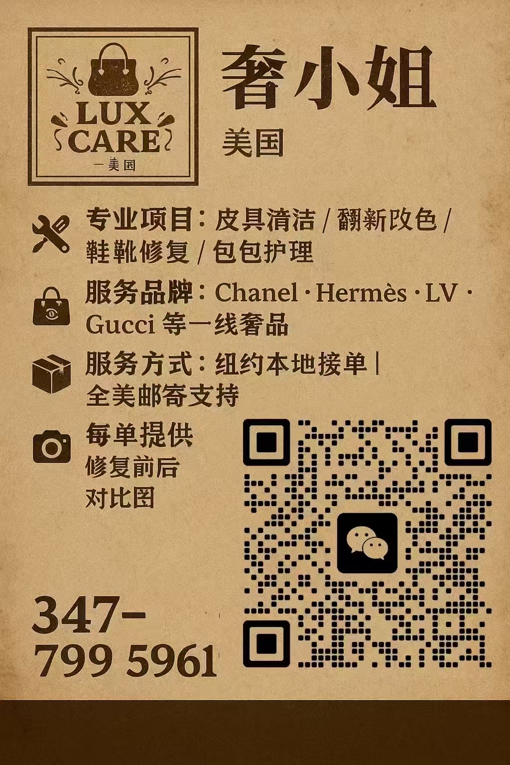 👋我是纽约在地奢侈品修复师,主理皮具养护与修复翻新,擅长各类皮革处理(Gucci/Chanel/LV/Hermès等高端品牌)