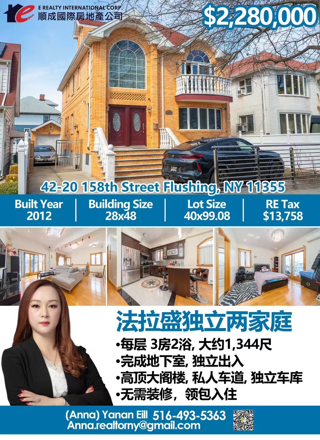 皇后区豪宅房产 Queens NY高端别墅住宅出售中 新上市独家房源买卖信息实时上线 皇后区学区好电梯公寓出售 华人首选 近地铁生活便利Queens皇后区中心地段公寓出售 新装修 拎包入住皇后区全新电梯公寓出售 管理低 配套齐全 可贷款皇后区华人区公寓出售 地铁商圈旁 投资自住皆宜 皇后区新楼盘康斗出售 配套成熟 可做1031投资皇后区带车位康斗出售 低管理费 自住投资皆适合 贝赛新房上市 Bayside NY 贝赛豪宅、联排别墅、新建住宅低价放盘中,独家房源抢先看,法拉盛两家庭合法房屋出售 自住+出租完美组合Flushing两家庭出售 华人聚居区近7号线 地段优越 大学点3家庭房屋出售 安全地段 华人社区核心位置大学点双家庭出售 配套成熟 学区好 居住与出租兼顾 长岛独栋房屋出售 富人区安静街区 居住舒适度高长岛华人区房屋出售 人气社区 稀有上市 房源有限 布鲁克林房屋出售精选 Brooklyn布鲁克林热门社区独家房源上线 布鲁克林独立屋与多家庭房源推荐 布鲁克林投资+自住房双重优势 Corona三家庭出售 配套齐全 每层独立出入 投资回报高可乐娜三家庭住宅出售 带院落+车道 出租需求旺盛