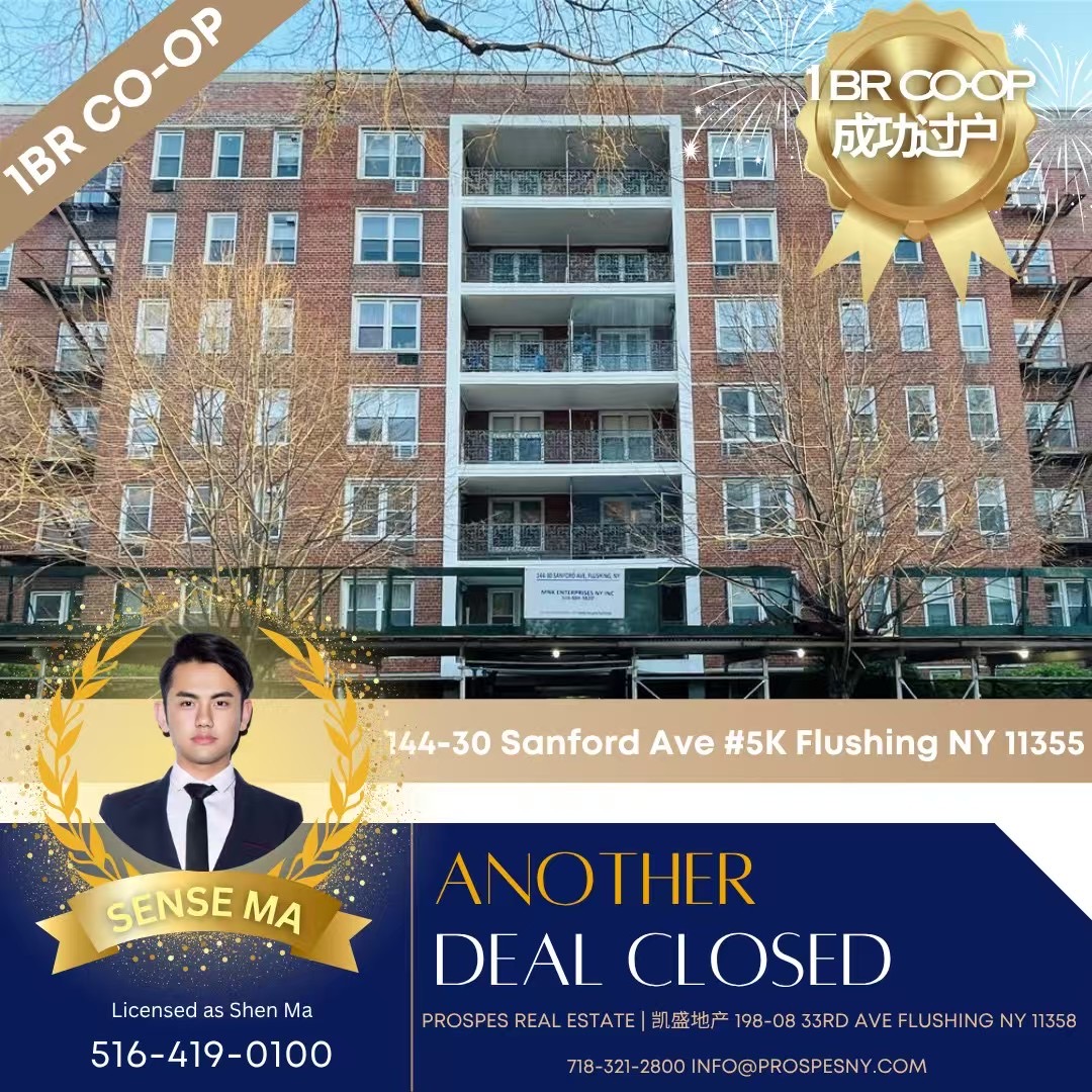 💪🏼💪🏼感谢我们的卖家选择凯盛经纪Sense独家代理位于Flushing的1 房Coop,Sense认真负责,专业可靠,帮助卖家顺利找到买家,成功过户!