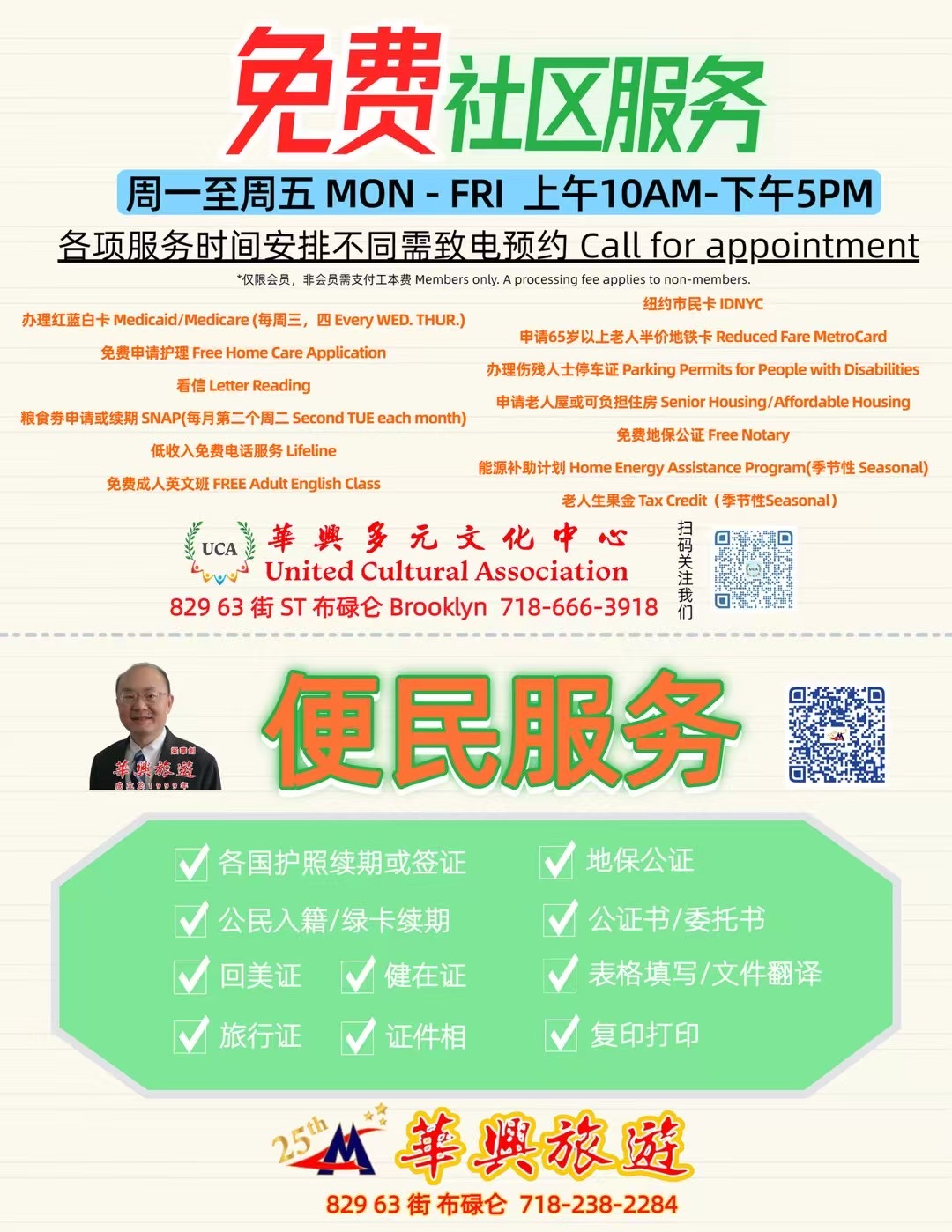 免费社区服务周一至周五 上午10AM-下午5PM各项服务时间安排不同需致电预约718-666-3928