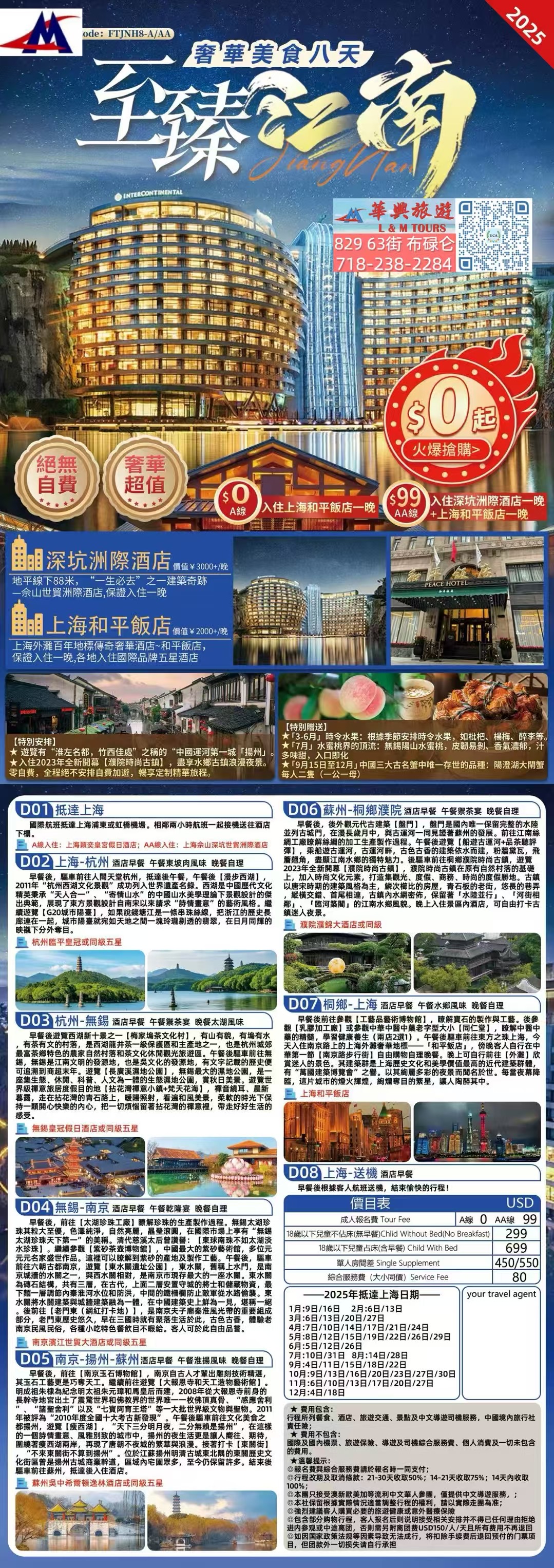 江南金秋封神榜‼返利狂飙,席卷全场❗🔥即日起【新】报𝟗-𝟏𝟐月江南系列团华侨💰最美江南美景𝟕天💰至臻江南奢华𝟖天𝗔团&𝗔𝗔团🔴獨家至臻江南𝟖天𝗔𝗕线,坐擁南北外灘全景索菲特及和平飯店『團費』𝘼$𝟬 // 𝘼𝘽$𝟰𝟵 // 𝘼𝘼$𝟵𝟵