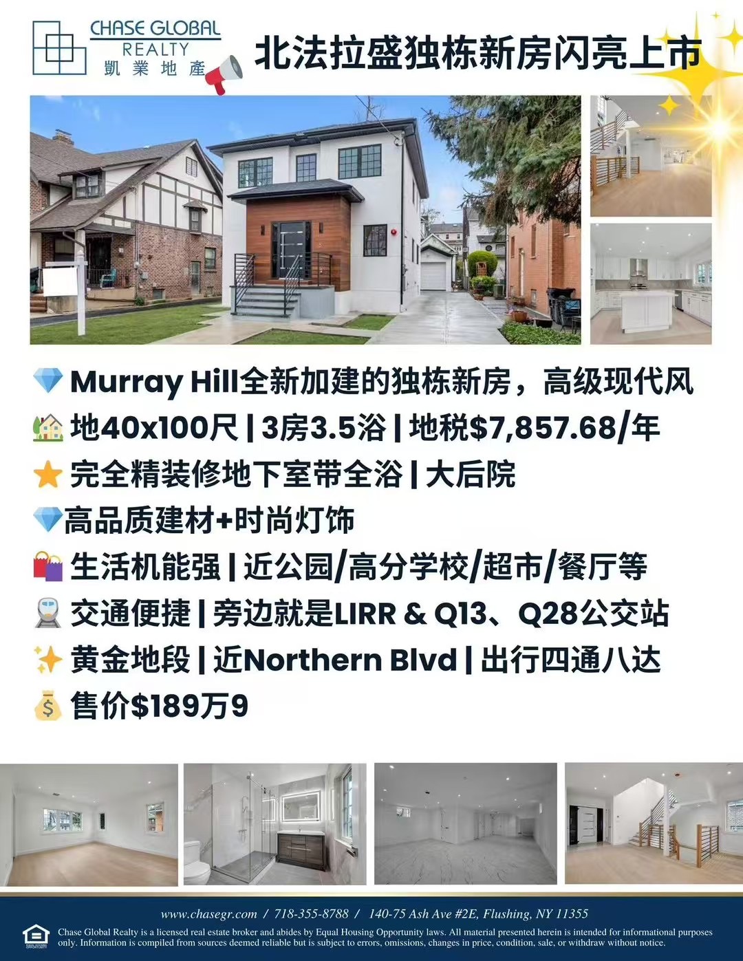 法拉盛一家庭独立屋出售 位于学区房核心地段 华人区热卖法拉盛独立一家庭出售 单边采光好 近地铁 生活交通便利 法拉盛一家庭独立屋出售 位于热门学区 采光极佳法拉盛华人黄金地段 法拉盛一家庭独栋出售 华人区首选 今天早上11:30 可以看房 , 请提前预约