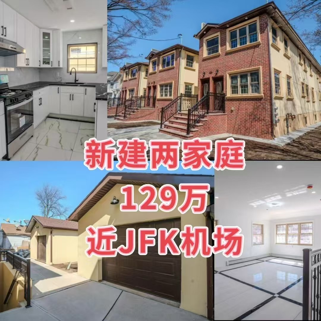 近JFK机场的全新建两家庭。共6房5卫完成地下室,独立出入。地税仅$2500。独立车道+车库。距离法拉盛开车20分钟售129万。917 293 8698