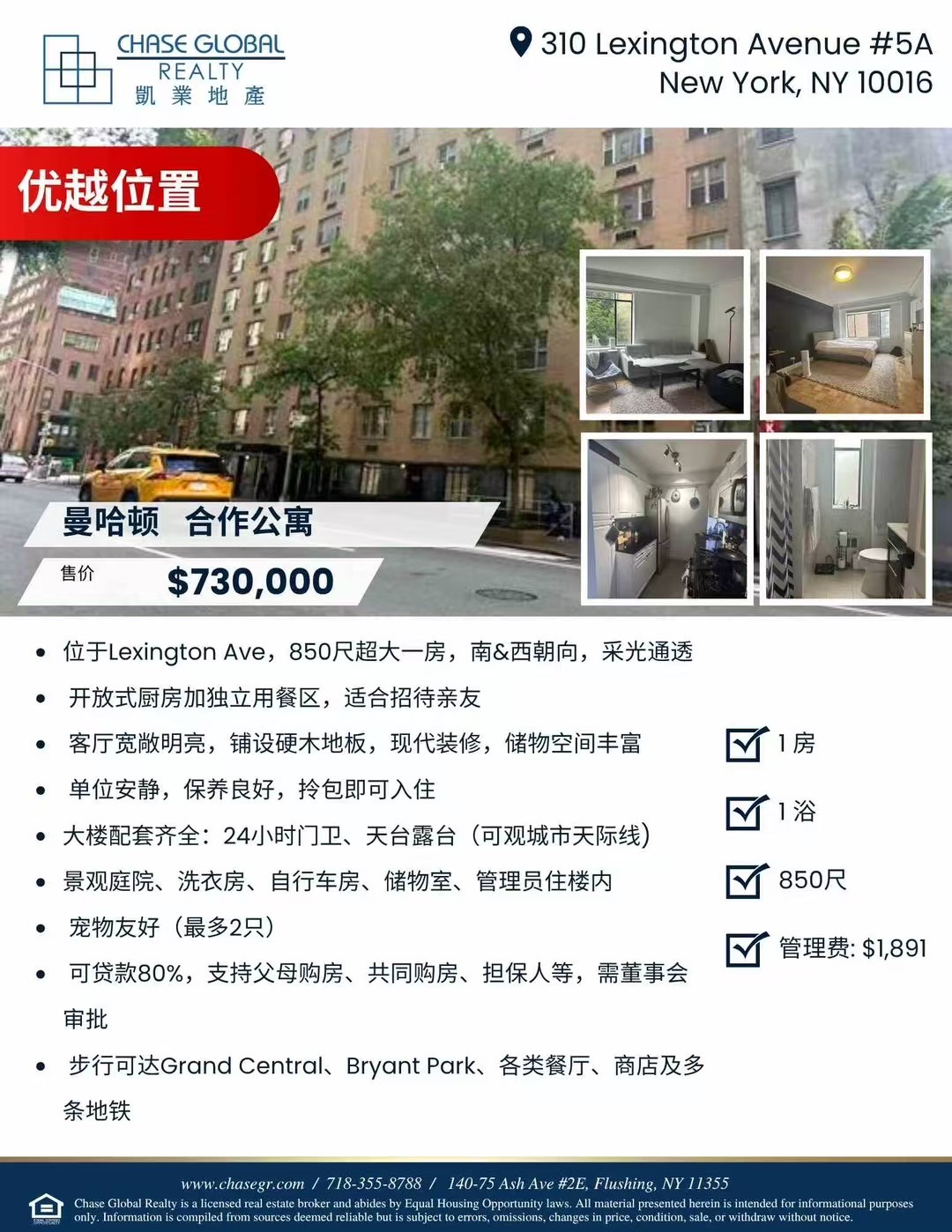 📍地址:310 Lexington Avenue Unit #5A, New York, NY 10016