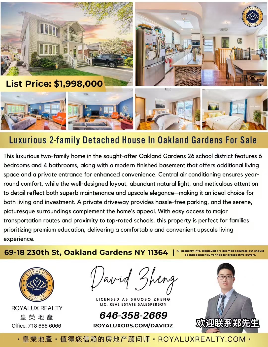 南贝赛26好学区豪华精装独栋大型2家庭出售 这栋位于南贝赛26好学区的豪华两家庭优质房产拥有6间卧室和4间卫生间,配备现代化装修的完成地下室,提供额外活动空间及独立出入口,极大提升了居住便利性;中央空调系统确保全年舒适,房屋布局合理、设计精巧、采光充沛,每个细节都彰显出精良的维护品质与奢华格调,是自住与投资兼备的理想选择。私家车道保障停车便捷,周边环境优美宁静,同时坐拥发达的交通网络与邻近多所名校的区位优势,尤其适合重视优质教育资源的家庭,为您提供舒适便利的高品质生活体验。欢迎同行转发合作及约看!