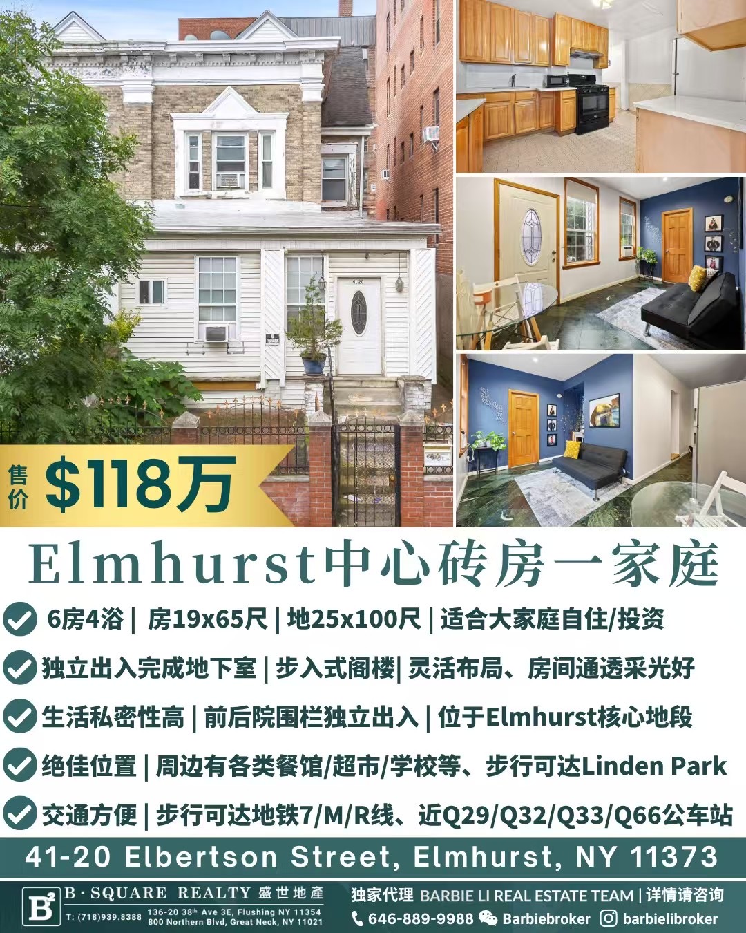 💎艾姆赫斯特房子出售💎新上市房源💎💎📍 Elmhurst黄金中心地段一家庭🏡 6房4浴 | 房18x55尺 | 地25x100尺 💼 灵活布局|适合大家庭、投资型💡 宽敞明亮|房间通透采光好📦 独立出入完成地下室|步入式阁楼🌳 前后院围栏独立出入|生活私密性高🚇 交通便捷 | 3分钟步行可达地铁7/M/R线 | 近Q29/Q32/Q33/Q66车站🛍 附近有PS 19/Elm Community Charter School/新镇高中(Newtown High School), 还有商场、超市、餐馆林立📈 Elmhurst核心地段|自住或投资皆宜💰售价$118万📍41-20 Elbertson Street, Elmhurst, NY 11373🅱盛世地产 独家代理🅱 #barbieliteam🤝欢迎转发合作 ☎646-889-9988