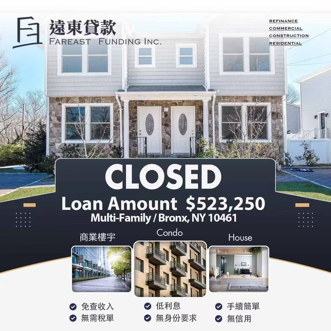🎉Closed🎉纽约不查收入贷款Bronx多家庭公司投资贷款贷款金额: 523,250LTV: 70%信用: 700专精疑难杂症,无论案子的大小,远东贷款都会尽心尽力的为您服务。省时,省心,省钱。最好的利息等着您。 疑难杂症请找远东!☎️☎️☎️#远东贷款#解决疑难杂症#省钱省心#WeCare