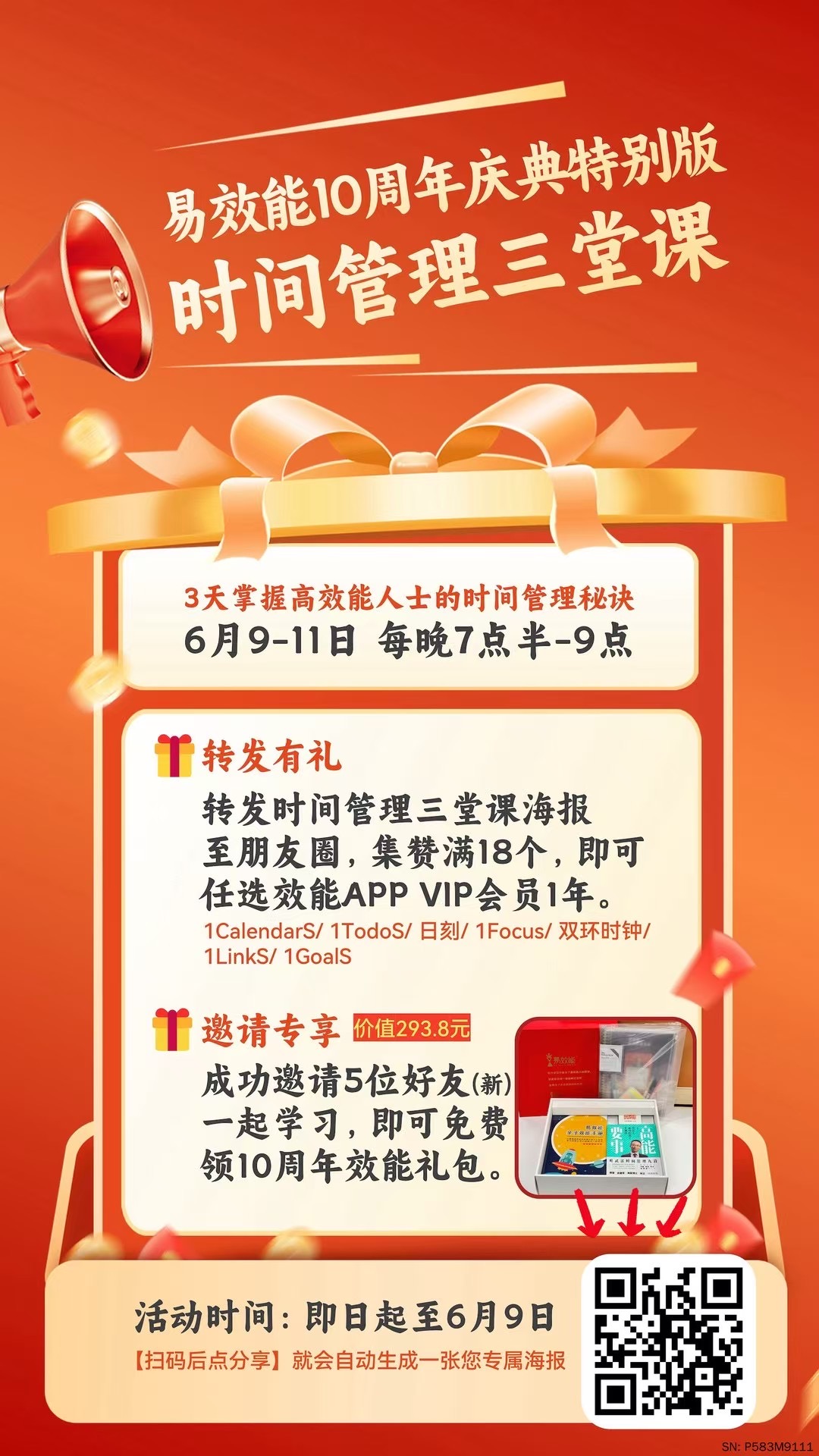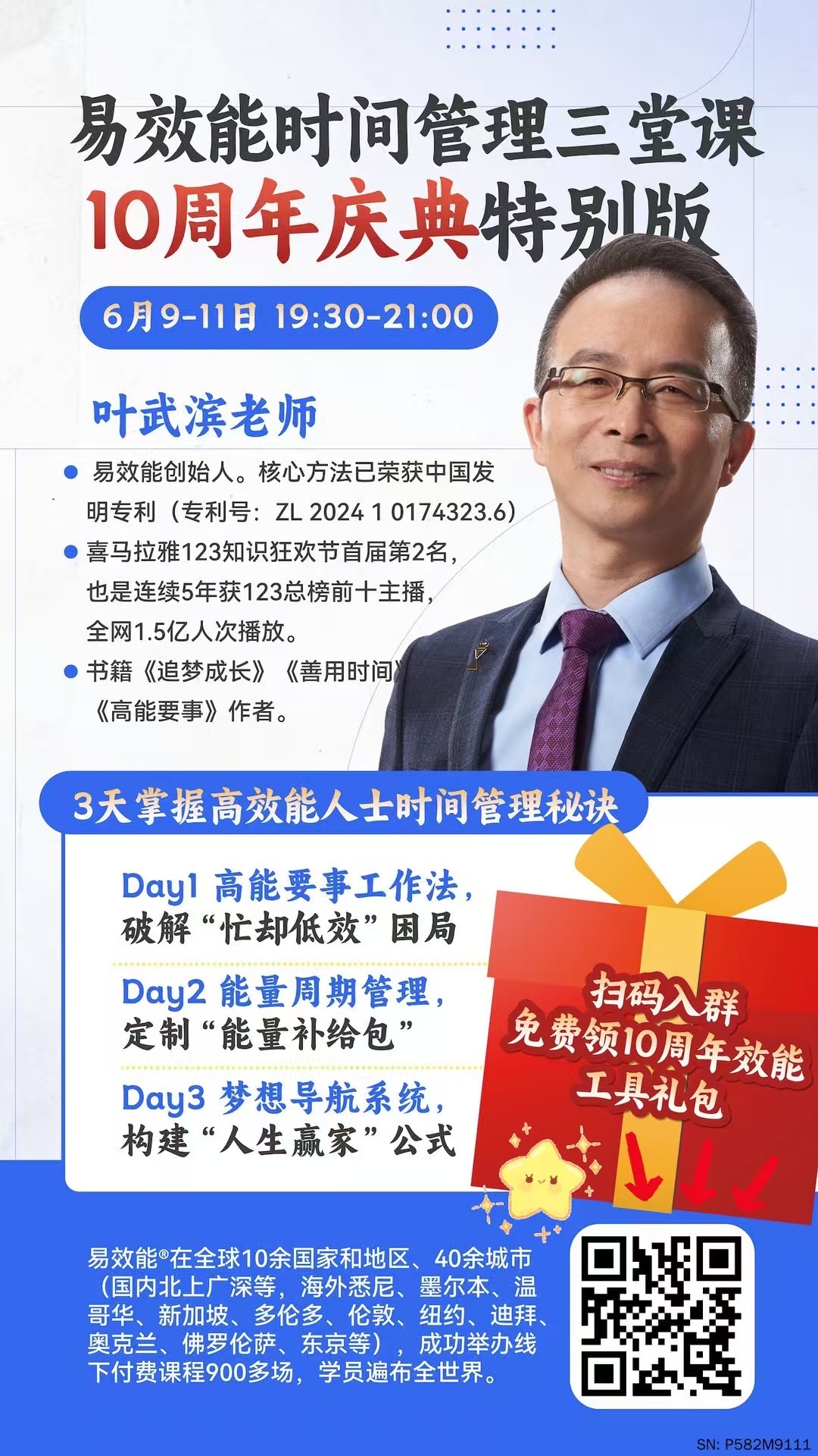 🌟【易效能10周年庆典重磅来袭】 📅 6月9-11日 每晚19:30-21:30 纽约时间早上7:30-9:30🎤 叶武滨老师亲授「时间管理三堂课」