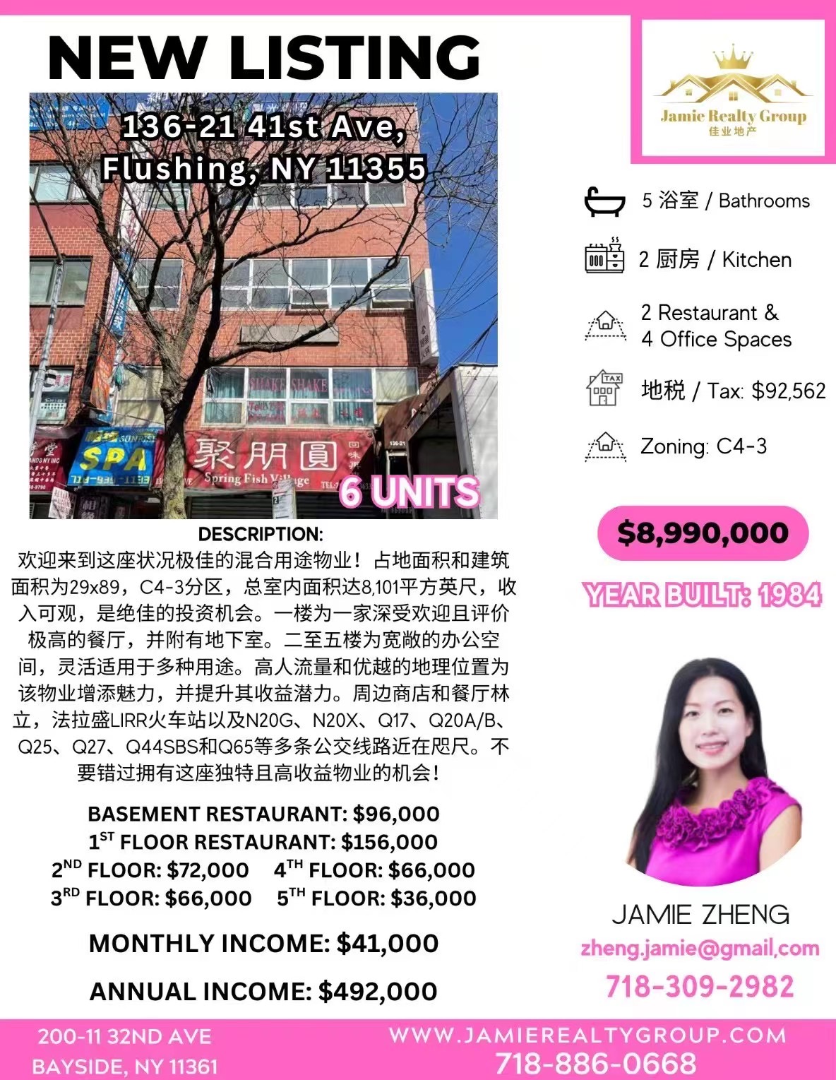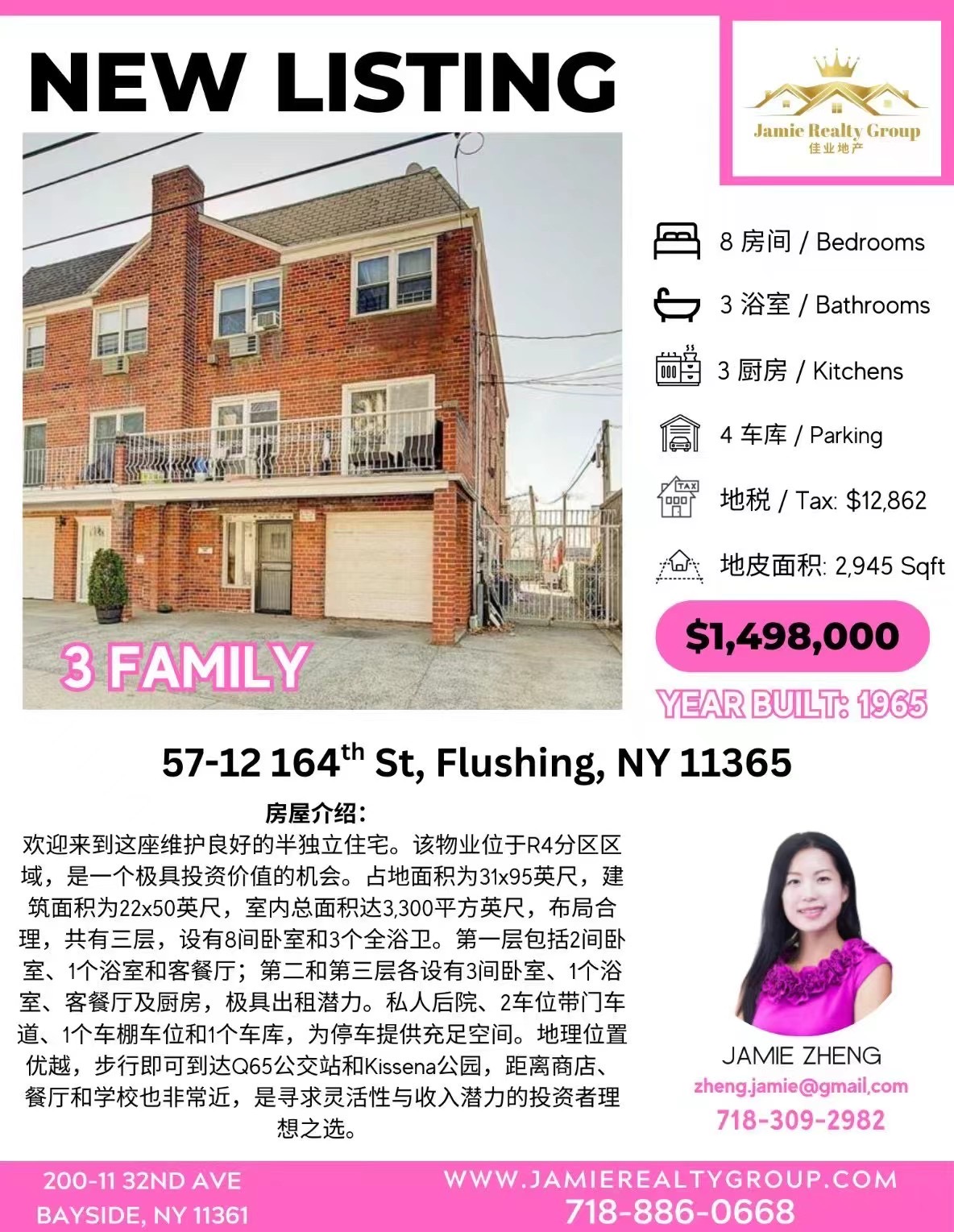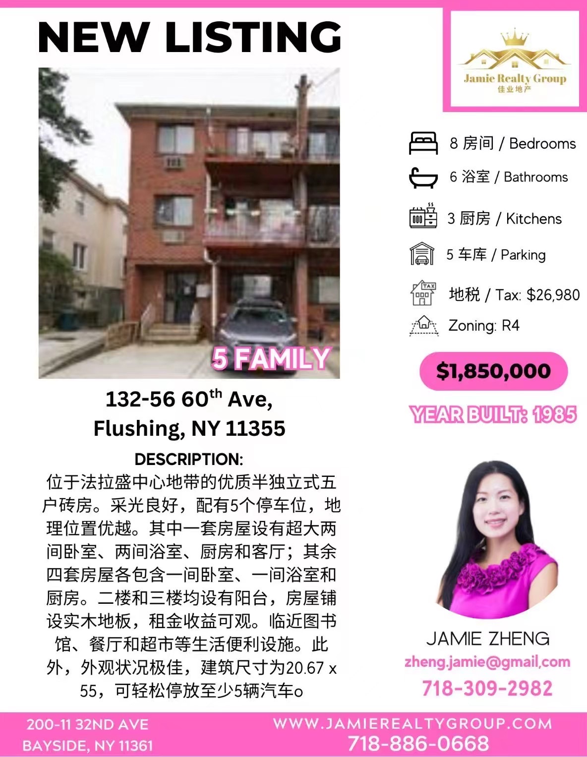 法拉盛学区好单边一家庭出售 靠近超市公园 安全宜居法拉盛单边独立屋出售 稀缺一家庭房源 投资或自住皆宜