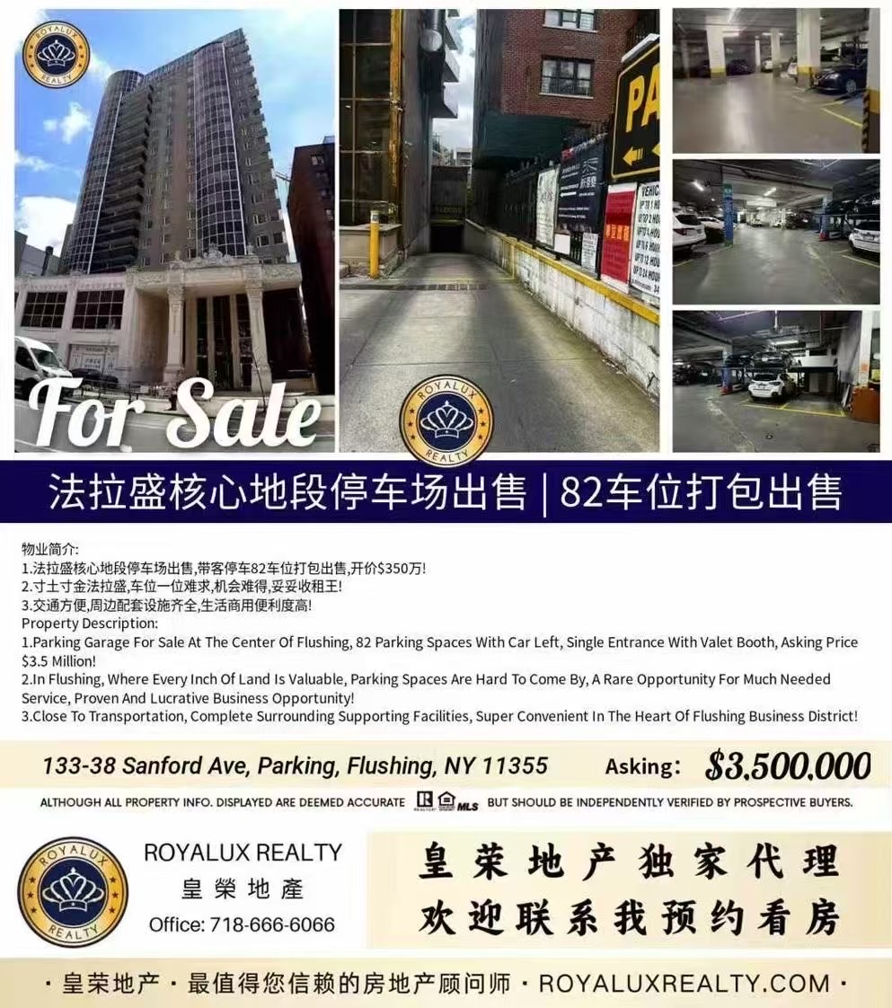 🌟法拉盛核心地段停车场出售,带客停车82车位打包出售,💰开价$350万!
