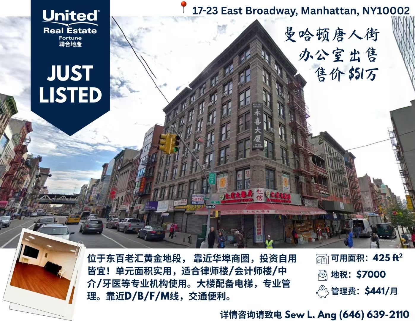 位于曼哈顿东百老汇黄金地段,电梯办公楼,单元面积实用,适合以下用途: