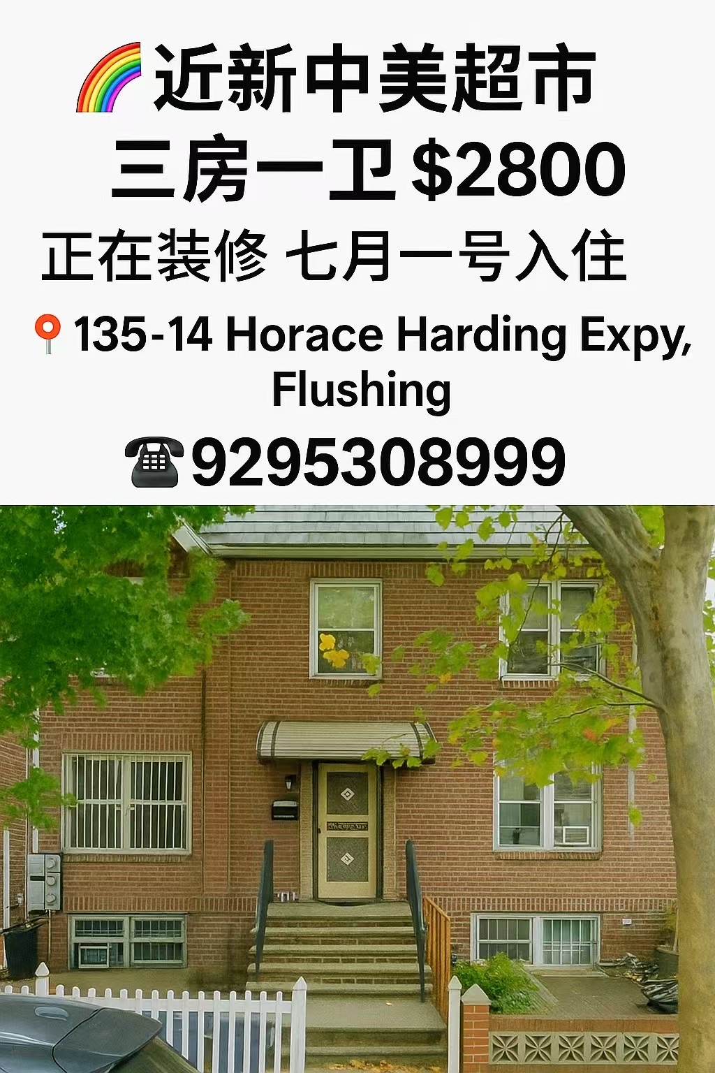 大中华超市对面高级公寓4000 随时入住🌈近新中美超市 三房一卫 2800💰正在装修 七月一号入住 🈚️宠📍135-14 Horace Harding Expy, Flushing🌈法拉盛Macy对面单间商业出租