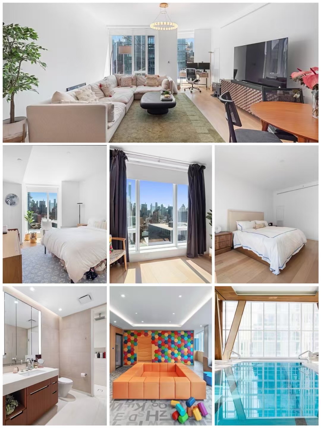 【曼哈顿高端两居公寓出售】减税楼1 West End Ave, 高层视野售价:$3,100,000户型:2房 2.5浴面积:1,581 平方尺物业:$2,128.93/月地税:$104.40/月坐落于曼哈顿西区黄金地段,户型方正,拥有超大落地玻璃窗,采光极佳,城市天际线尽收眼底。厨房配备高端家电及定制意式橱柜,整体装修风格现代、精致,处处体现奢华品质。