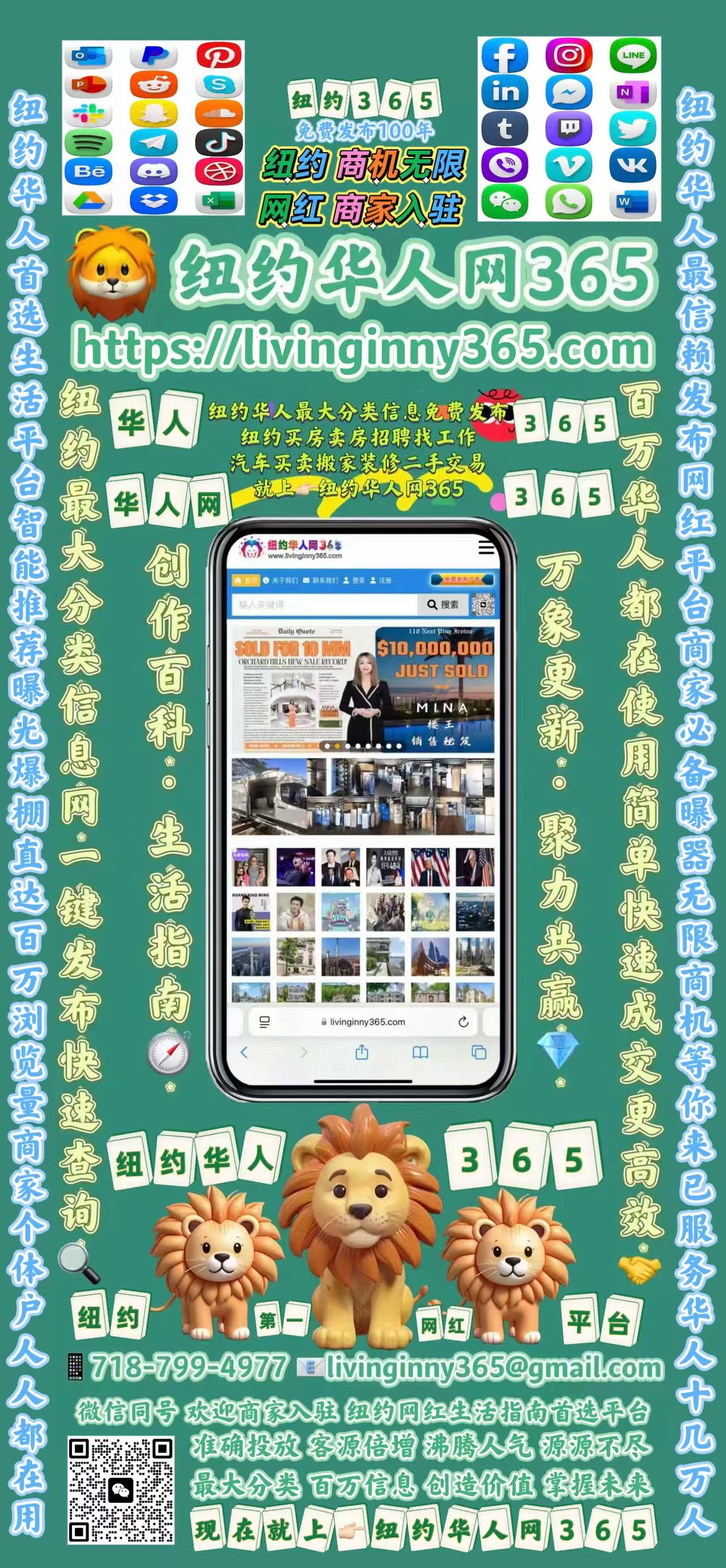 纽约华人网365-美国安家和生活中文权威资讯平台,结合纽约中文网与华人168免费信息发布优势,覆盖北美华人网商家入驻、纽约租房、法拉盛及布鲁克林房屋出租、招聘求职、找工作以及二手车买卖等多元服务,助力华人轻松融入大纽约生活,在纽约每一个华人都值得拥有一把打开本地生活的金钥匙。而这把钥匙,正是——纽约华人网365 https://livinginny365.com