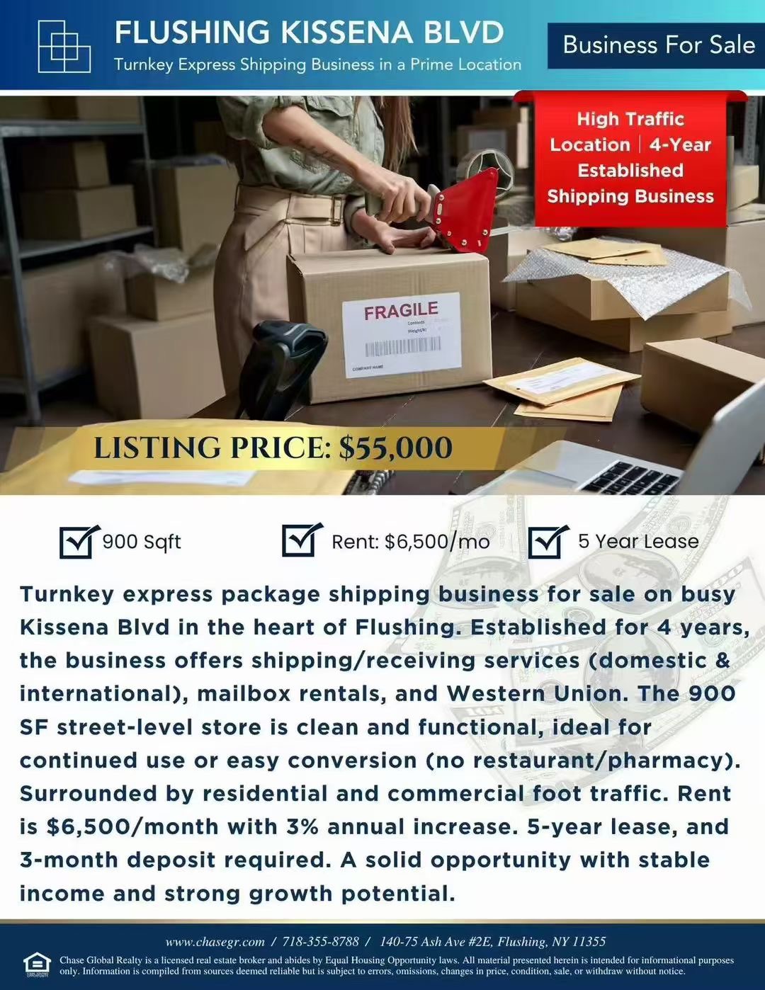 🔥法拉盛黄金地段 快递店生意转让🔥📦 4年老店,客源稳定,口碑优良