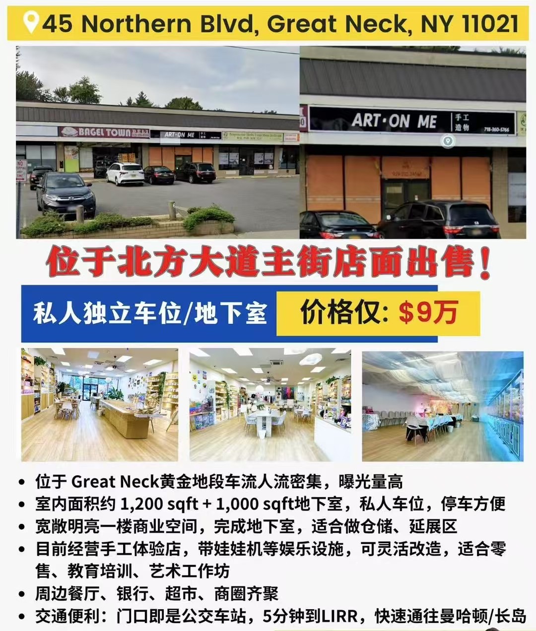 🔥北方大道黄金地段主干道旺铺出售🔥 📍45 Northern Blvd.Great Neck, NY 11021💥叫价仅:$9万