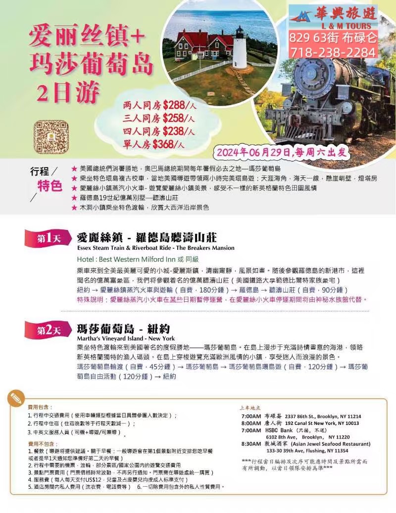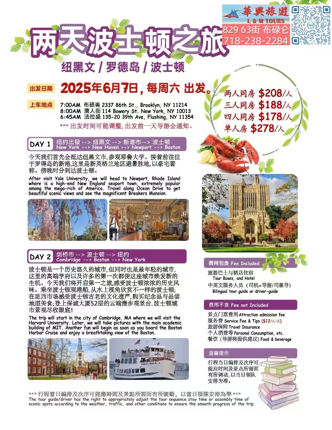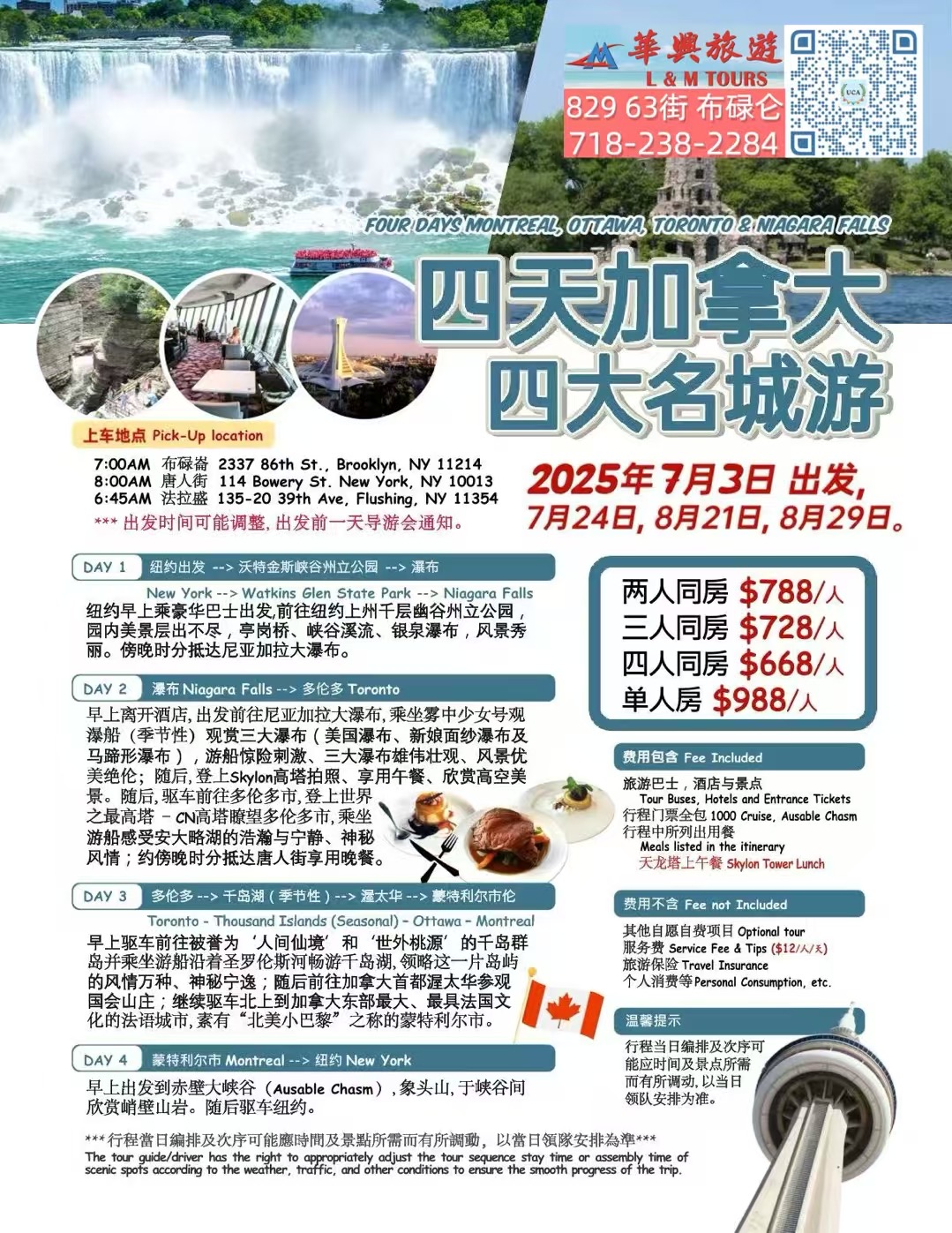 纽约华人网365-法拉盛旅游团每日出发 专业导游带团 中英文讲解 适合家庭及商务出行 纽约旅游攻略大全 华人旅游社精选路线 一日游多日游高性价比推荐 纽约旅游巴士团超值优惠 多语种服务 热门景点直达观光无忧 华人旅游公司纽约专业推荐 包团定制游 出境入境游均可承接一日游多日游高性价比推荐多样巴士团线路,法拉盛出发美东经典七日游 尼亚加拉瀑布+华盛顿DC深度体验 纽约出发波士顿名校探访团 哈佛MIT深度文化之旅适合亲子留学考察 纽约本地华人旅游公司推荐 专业中文服务 安排灵活 信誉保障 法拉盛旅行社哪家好?纽约华人最爱的一站式旅游服务平台推荐任您选择华兴旅遊 718-666-3918 829 63 Street Brooklyn, NY 11220