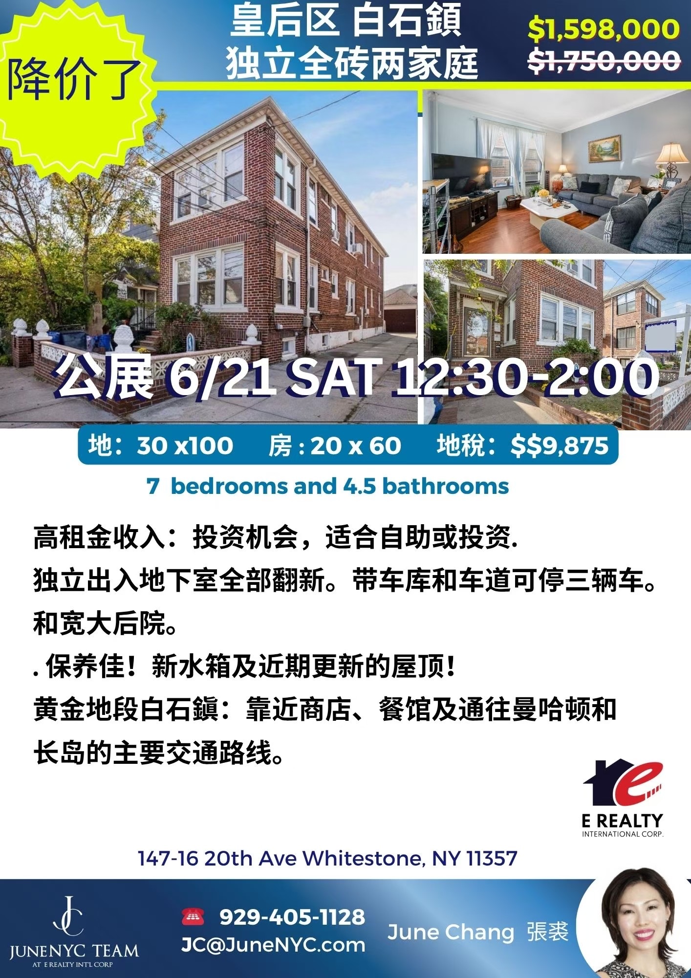 皇后区可贷款两家庭出售|首付低、手续简便 皇后区两家庭独立屋出售信息总汇|现房即看即签 白石镇两家庭住宅出售 满五年唯一 带车位车库 居住舒适白石镇合法双家庭出售 带稳定租客 回报率高 交通便利