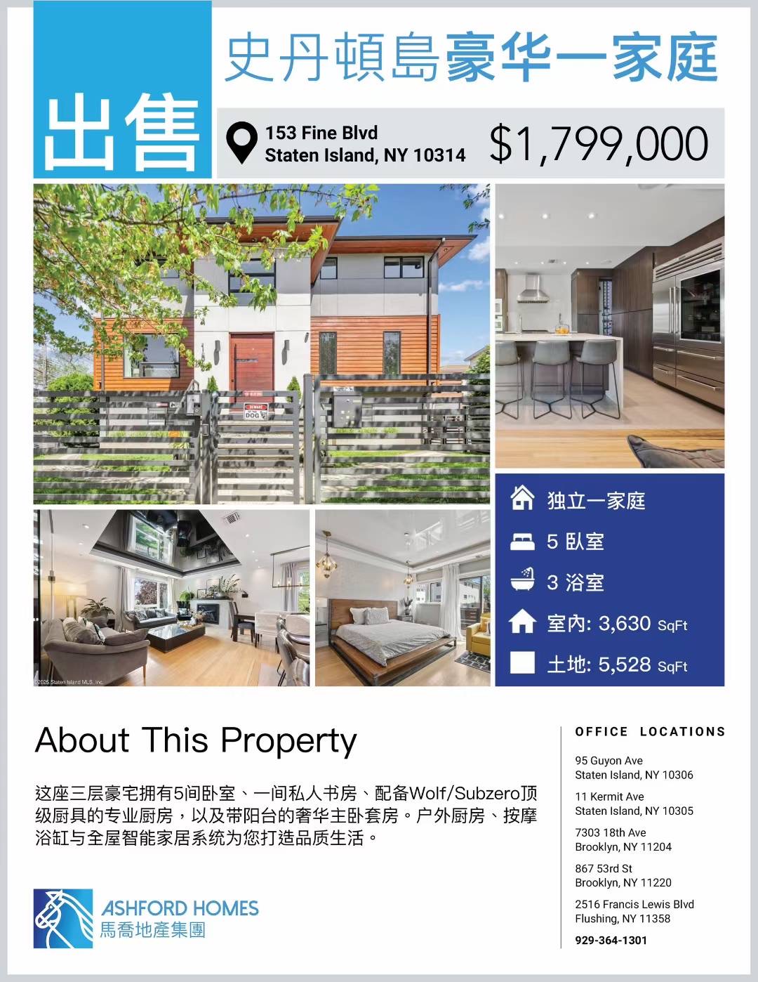 Staten Island一家庭学区房出售 安全街区 华人区好房源史丹顿岛优质学区一家庭住宅出售 适合家庭成长 环境优[Fireworks] 馬喬地產集團獨家代理[Fireworks]